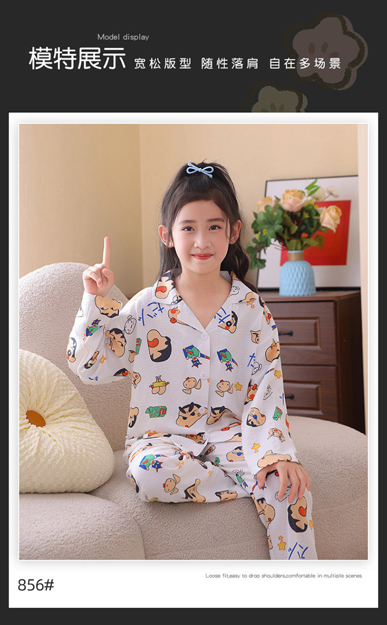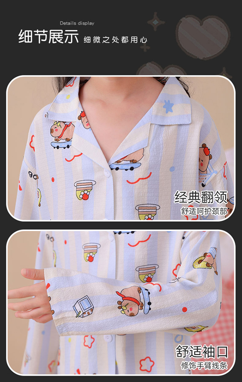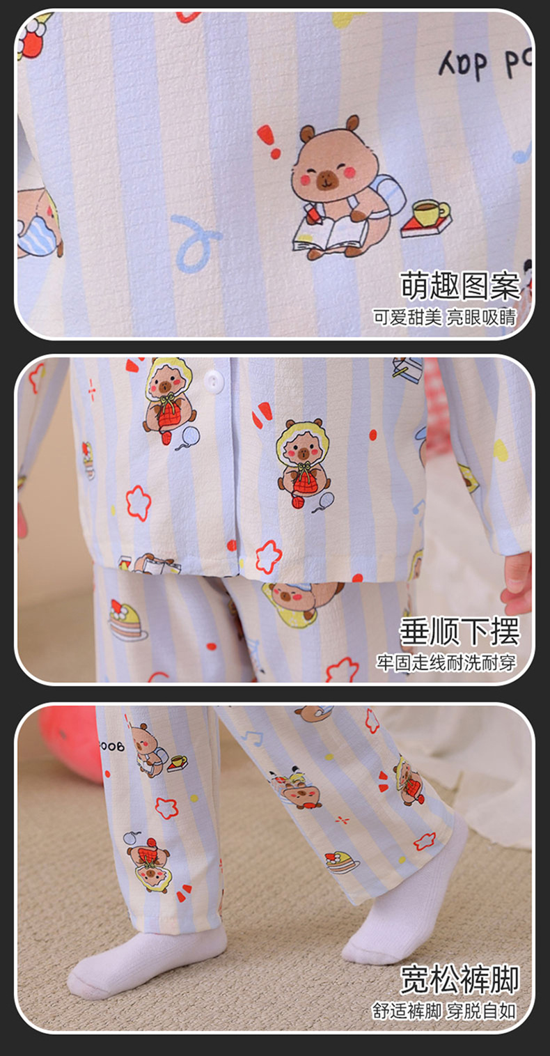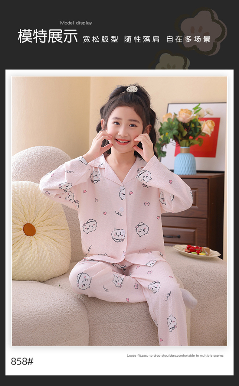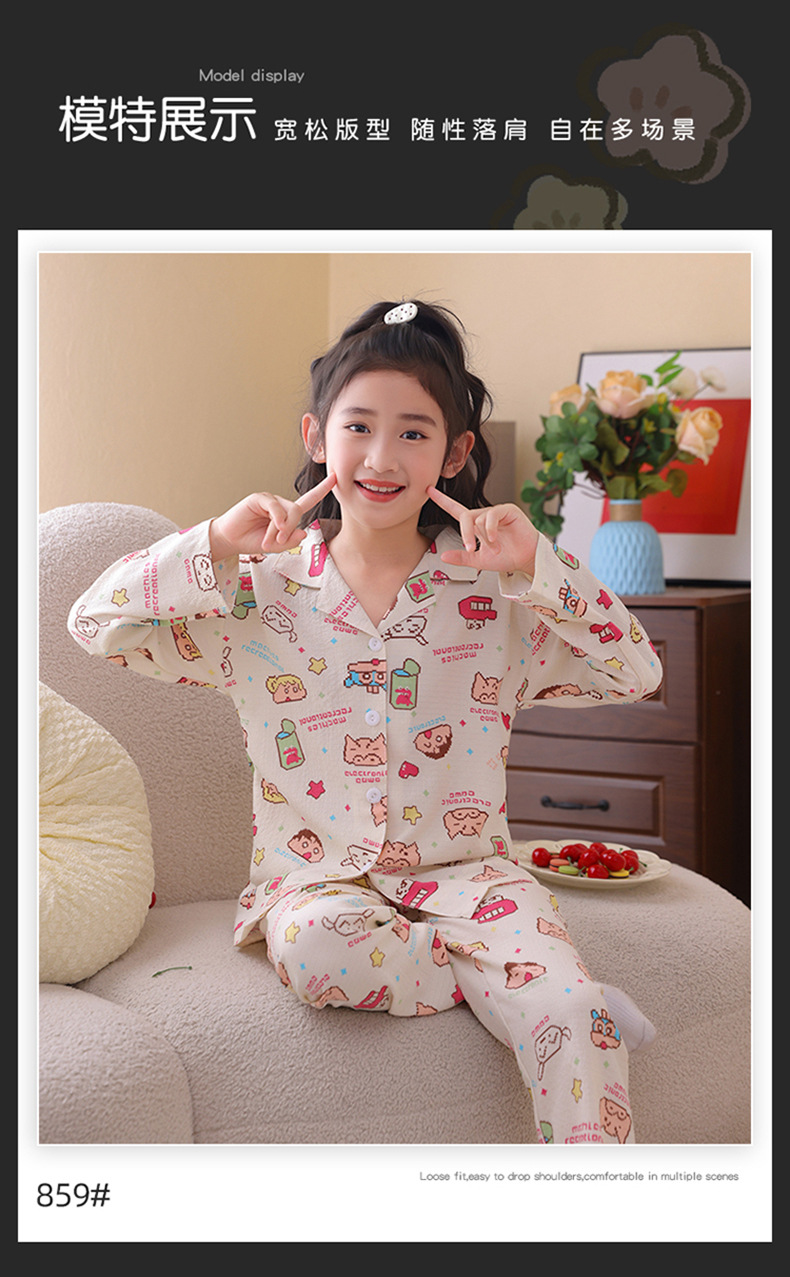 한국 스타일 봄과 여름 새로운 어린이 만화 귀여운 잠옷 봄과 가을 버블 코튼 긴팔 소녀 홈웨어 세트
