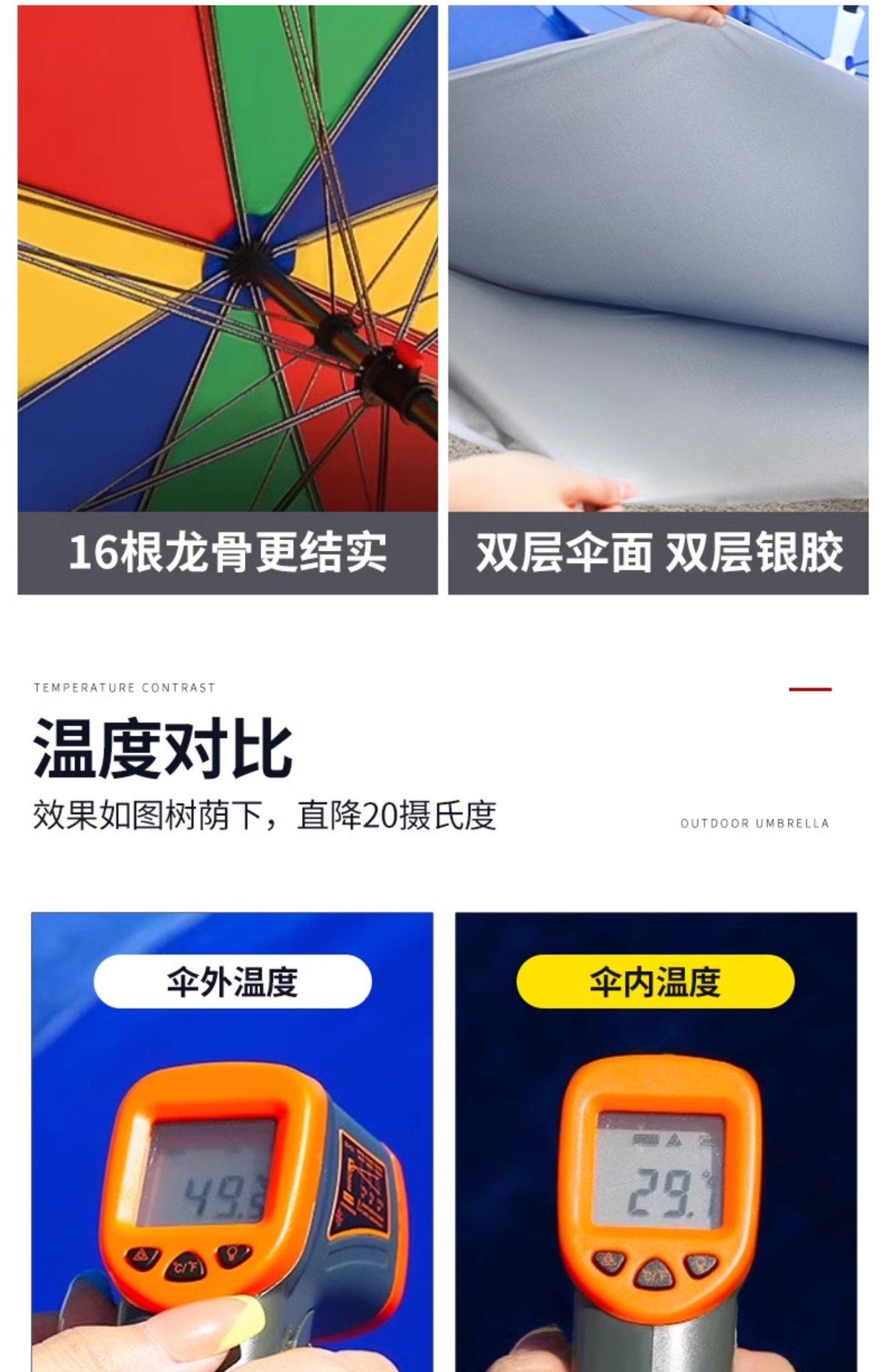 • [이중뼈 16개] 빅레드 2.8m [이중 은색 플라스틱 우산 표면] + 두꺼운 우산봉
