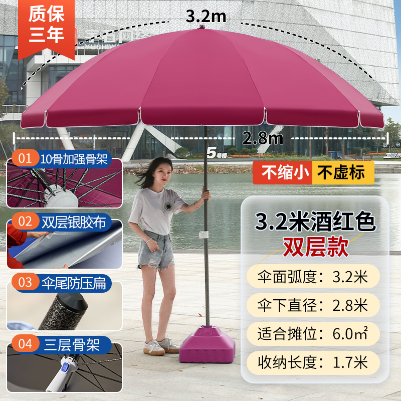 • 버건디 2.8m [이중 은접착 우산 표면] + 두꺼운 우산봉