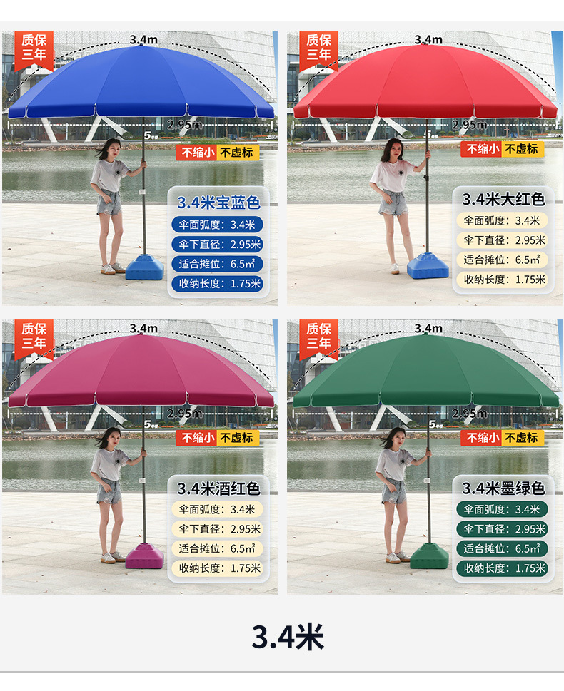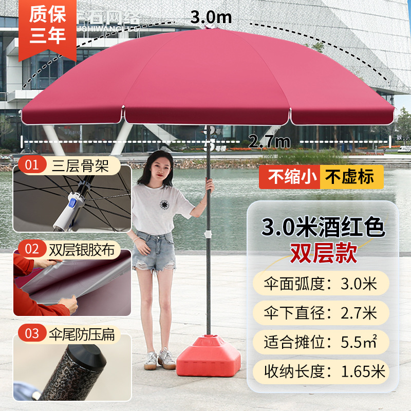 • 다홍 3.0m [이중 은접착 우산 표면] + 두꺼운 우산 기둥