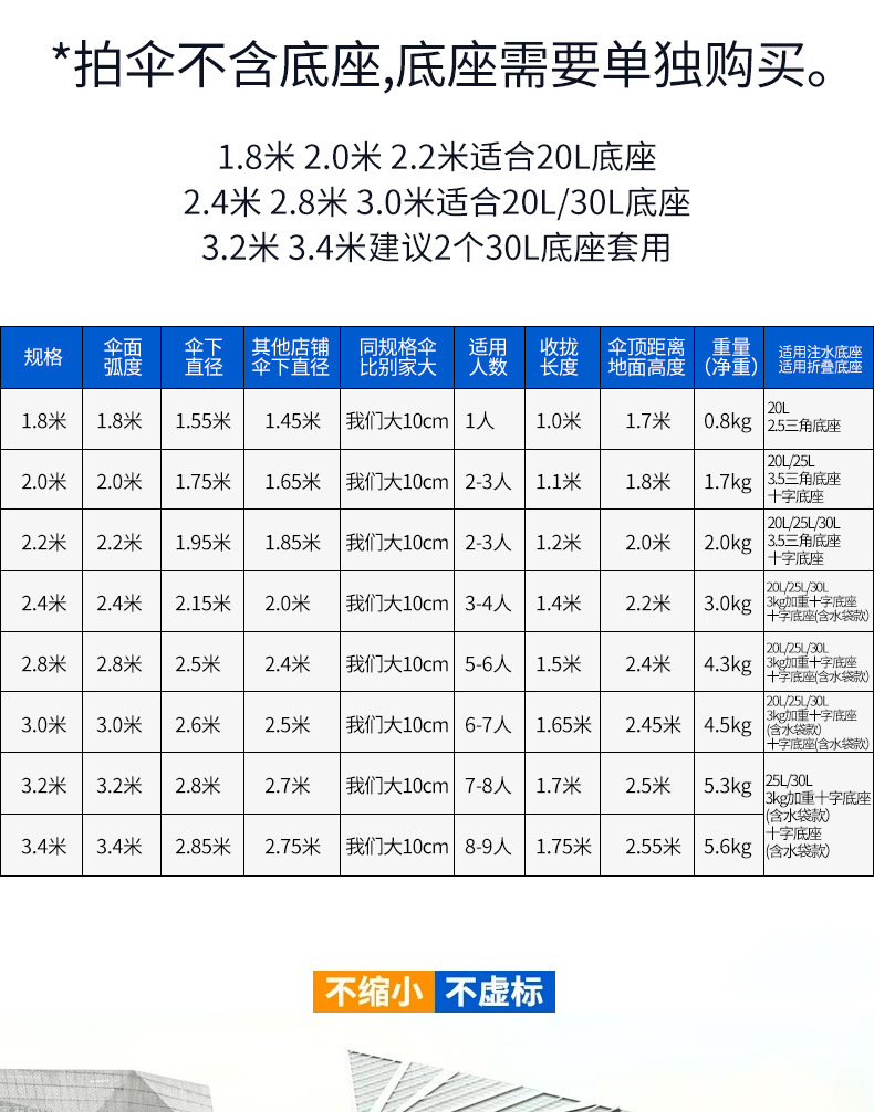 • 사파이어 2.8m [이중 은접착 우산 표면] + 두꺼운 우산 기둥