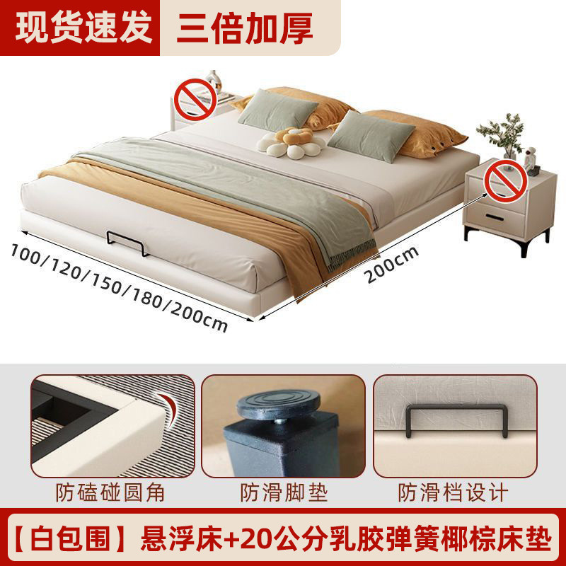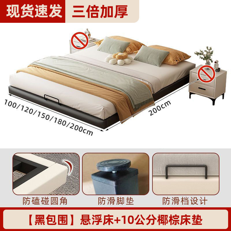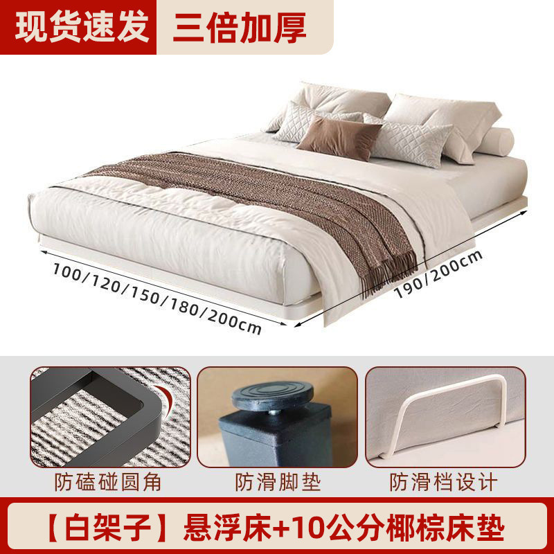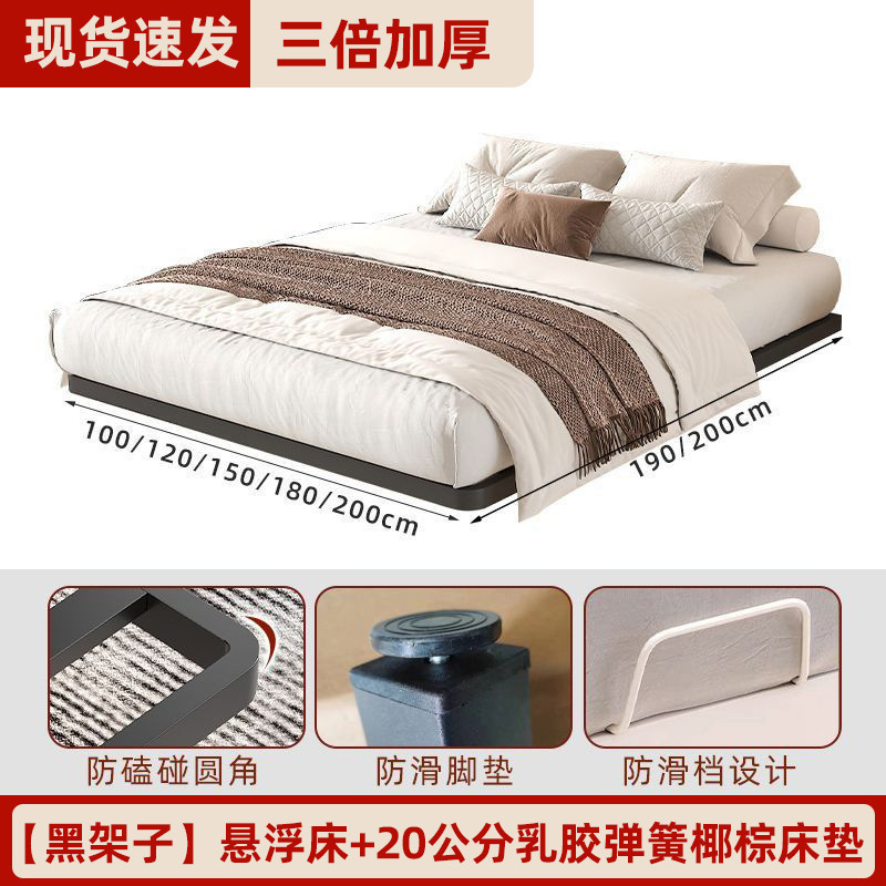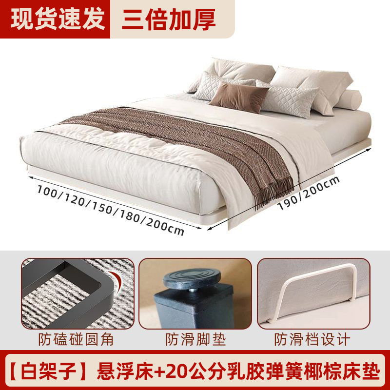 철제 침대 더블 침대 가정용 스테인레스 스틸 공중에 매달린 철제 프레임 침대 두꺼운 강철 프레임 침대 현대 간단한 공중에 매달린 침대스토어 가기