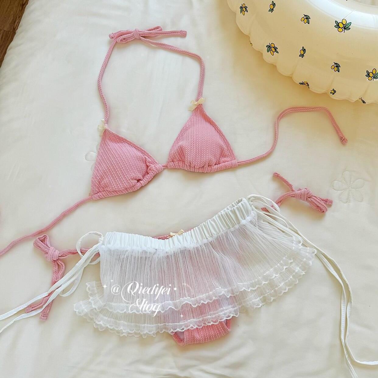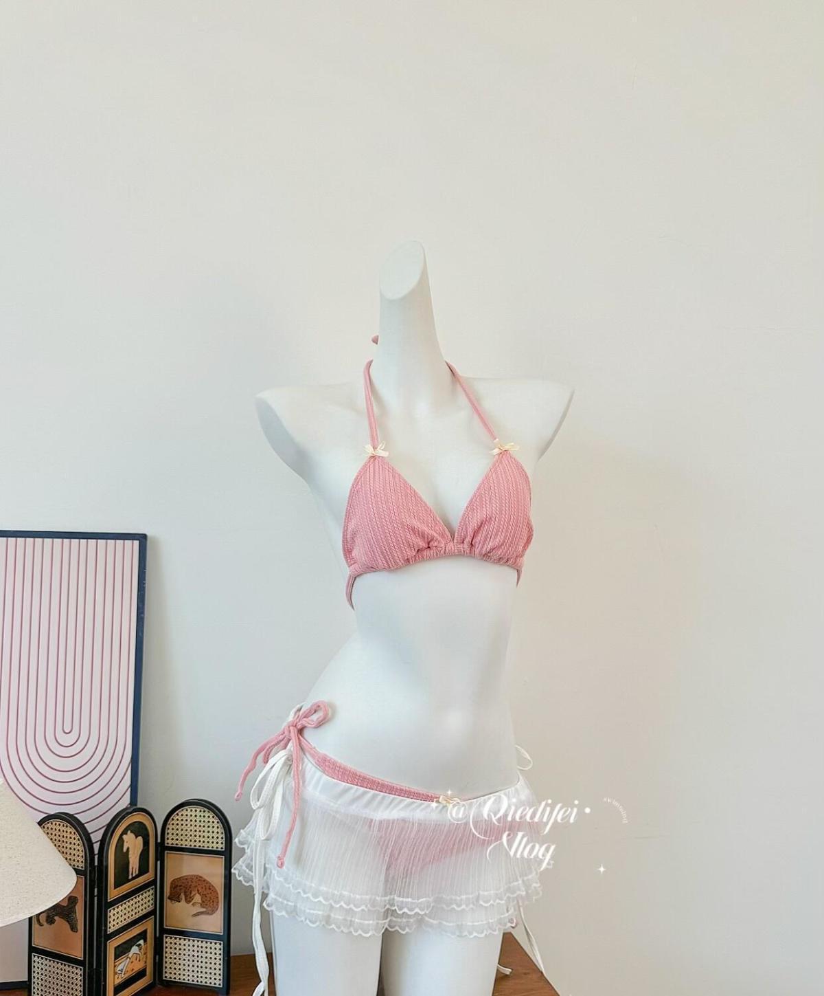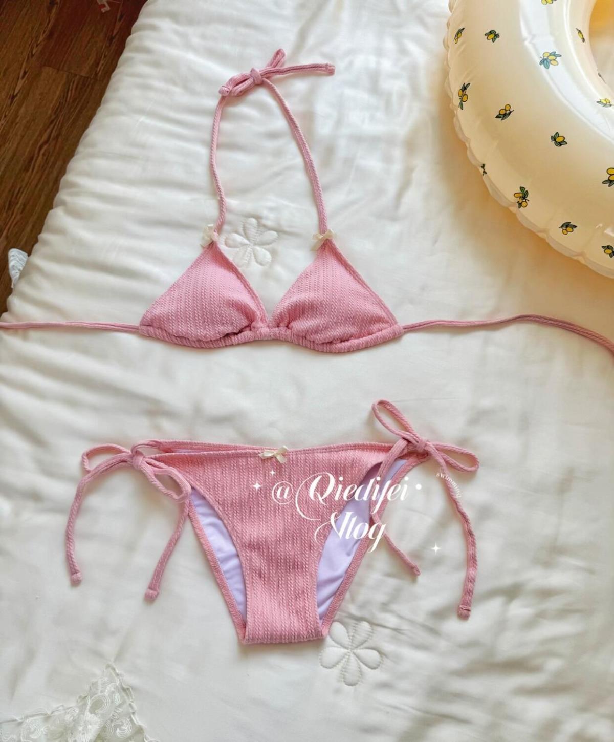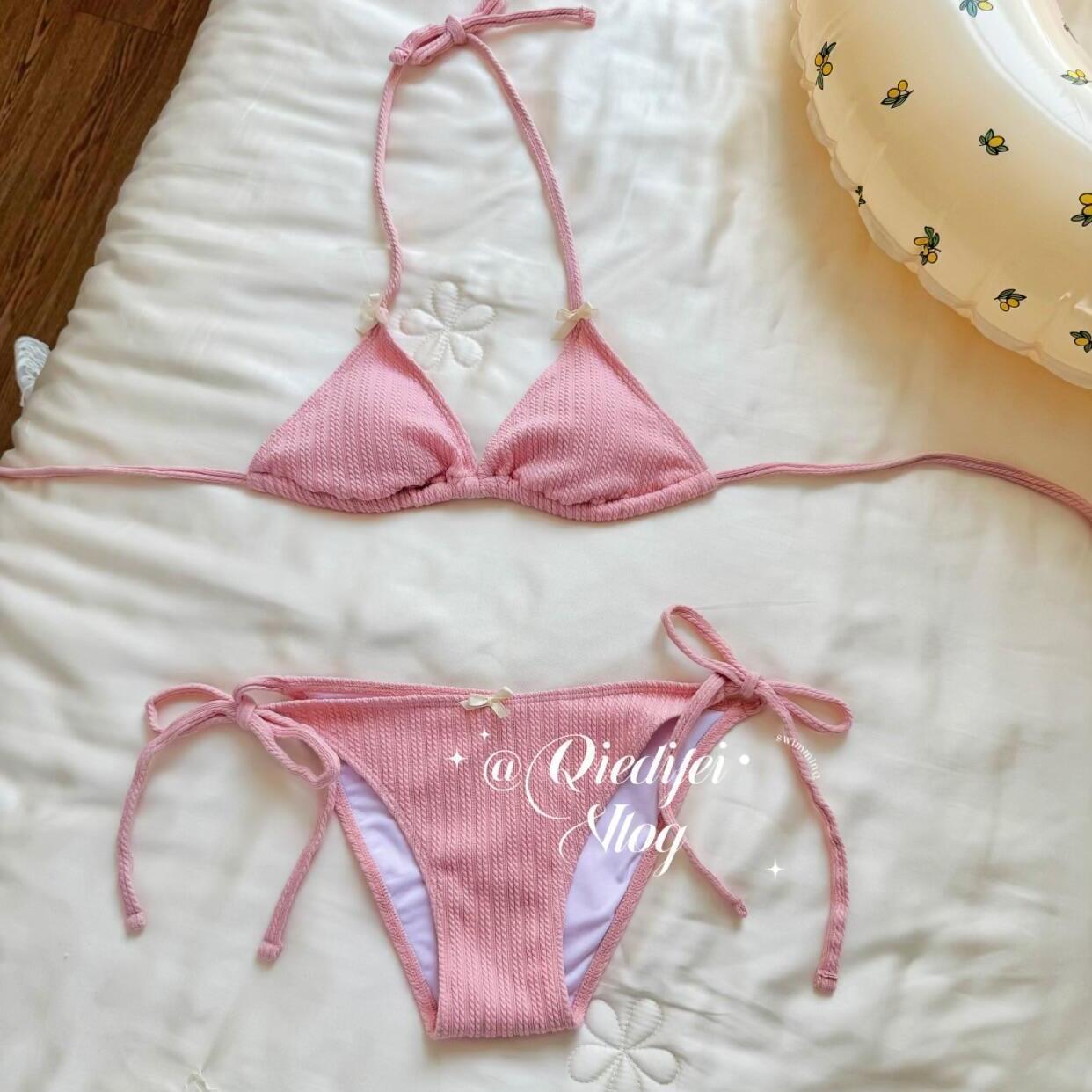 가슴이 작은 여성용 "핑크" 비키니 수영복, 섹시하고 순수한 섹시 스타일, 홀터넥, 산뜻한 온천 휴가, 아름다운 수영복스토어 가기