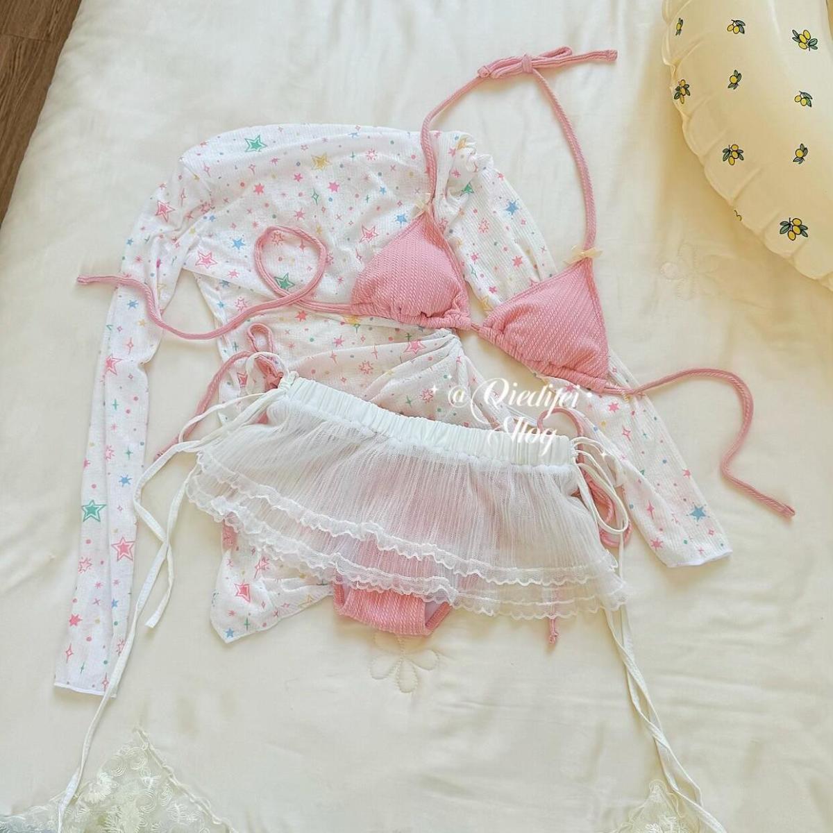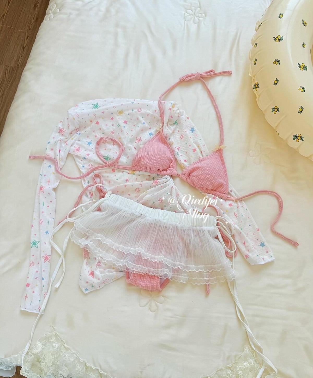 • 핑크 비키니 + 엉덩이 커튼 + 별 블라우스