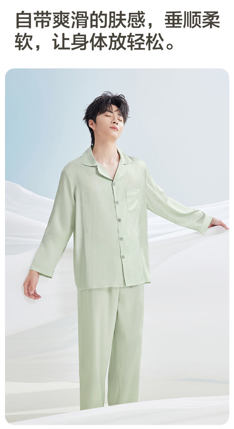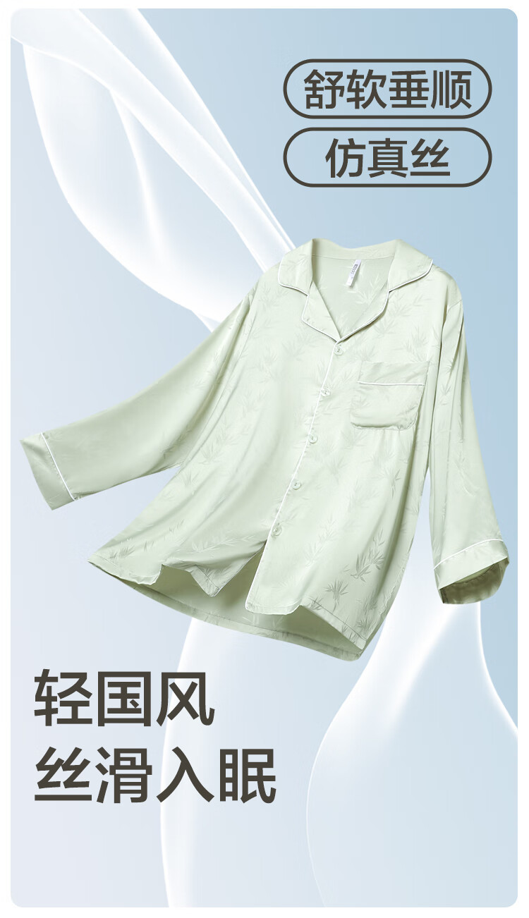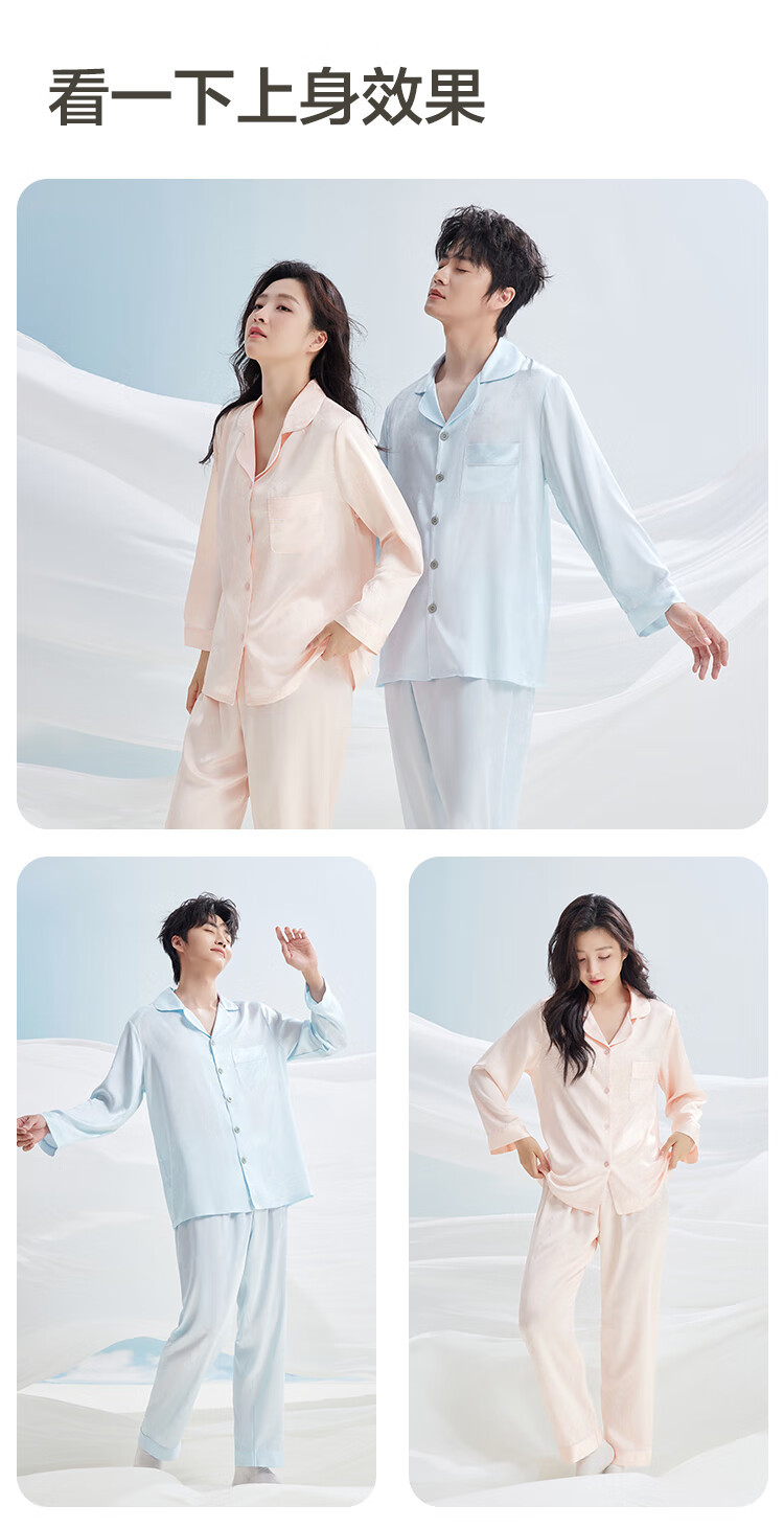 Hongdou 홈 남성 및 여성 잠옷, 가볍고 얼음처럼 부드럽고 캐주얼하며 루즈한 긴팔 새틴 질감으로 집 밖에서도 착용 가능스토어 가기