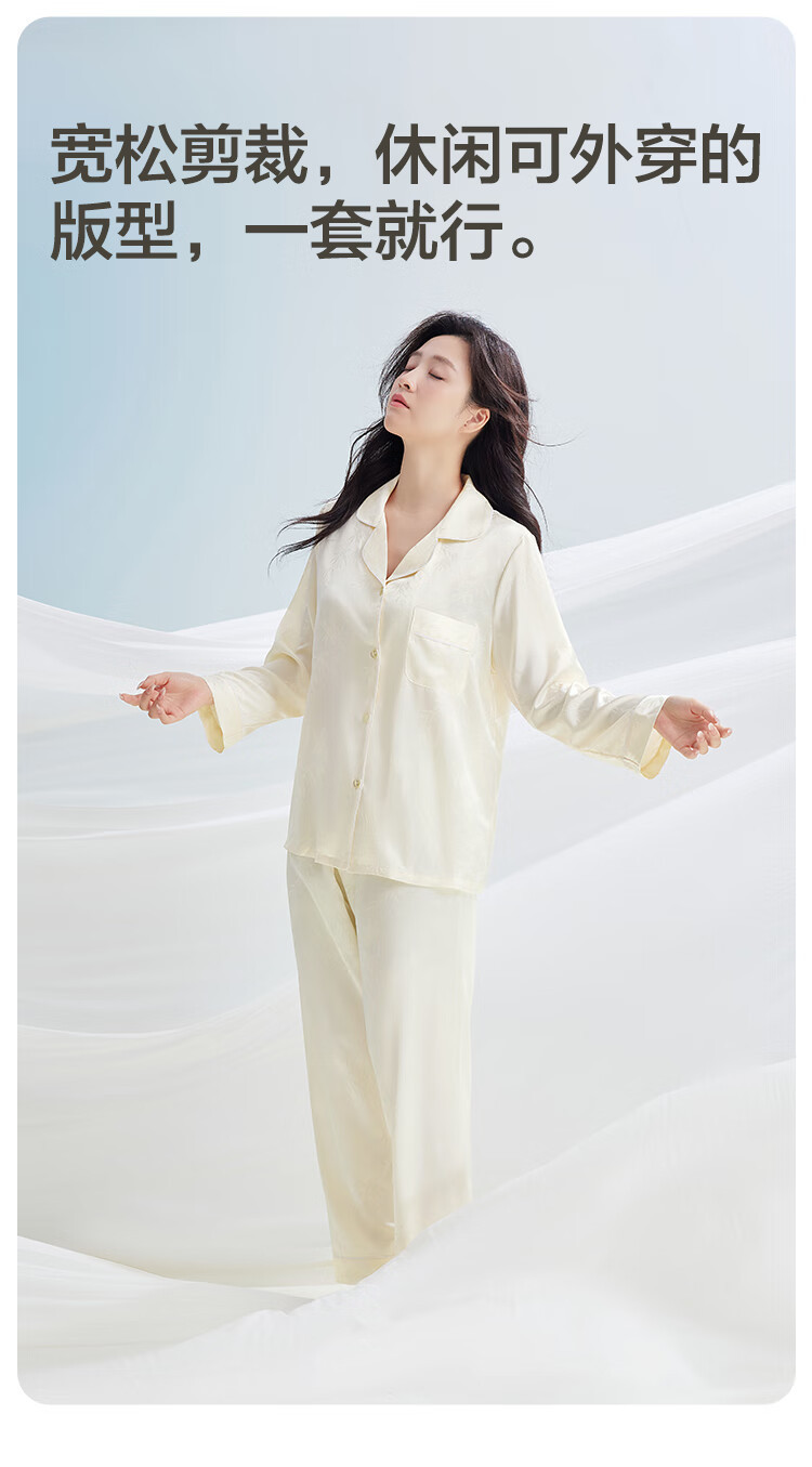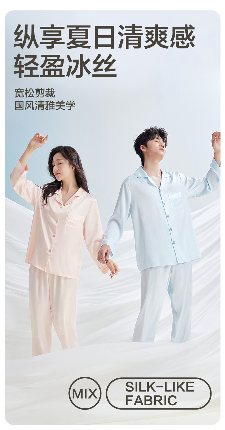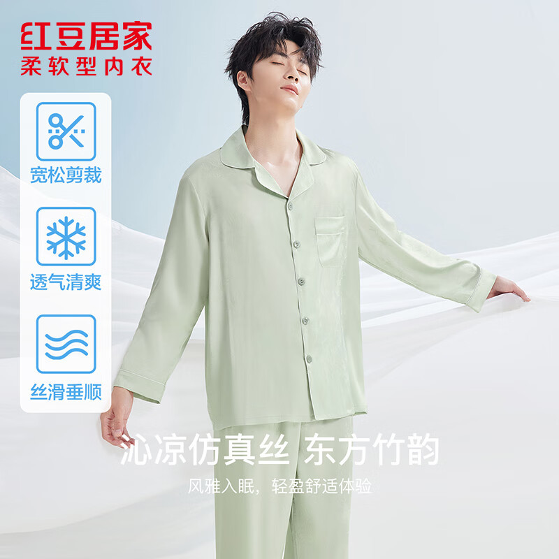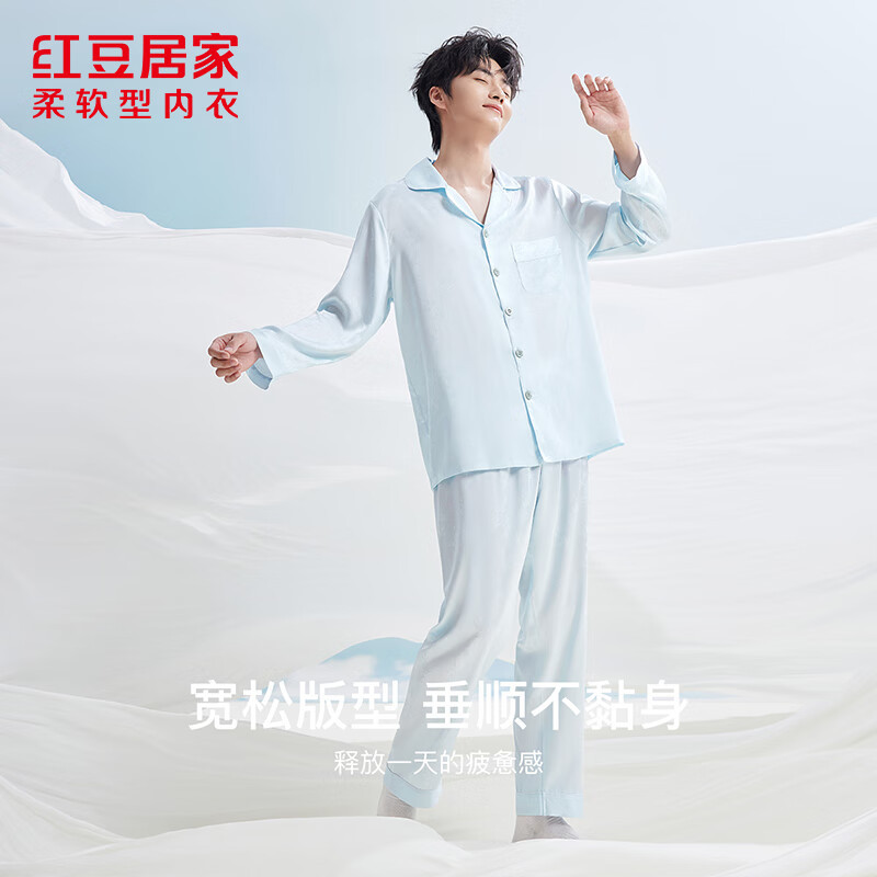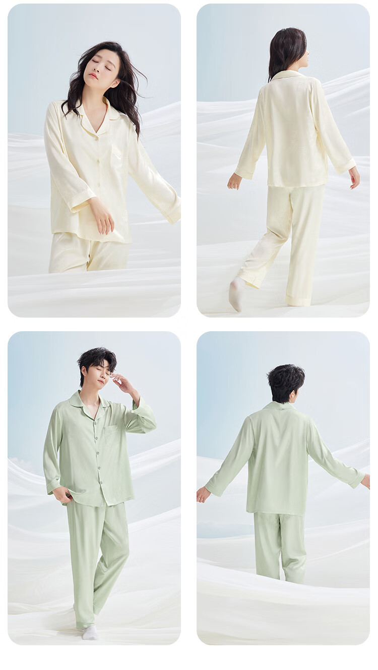Hongdou 홈 남성 및 여성 잠옷, 가볍고 얼음처럼 부드럽고 캐주얼하며 루즈한 긴팔 새틴 질감으로 집 밖에서도 착용 가능