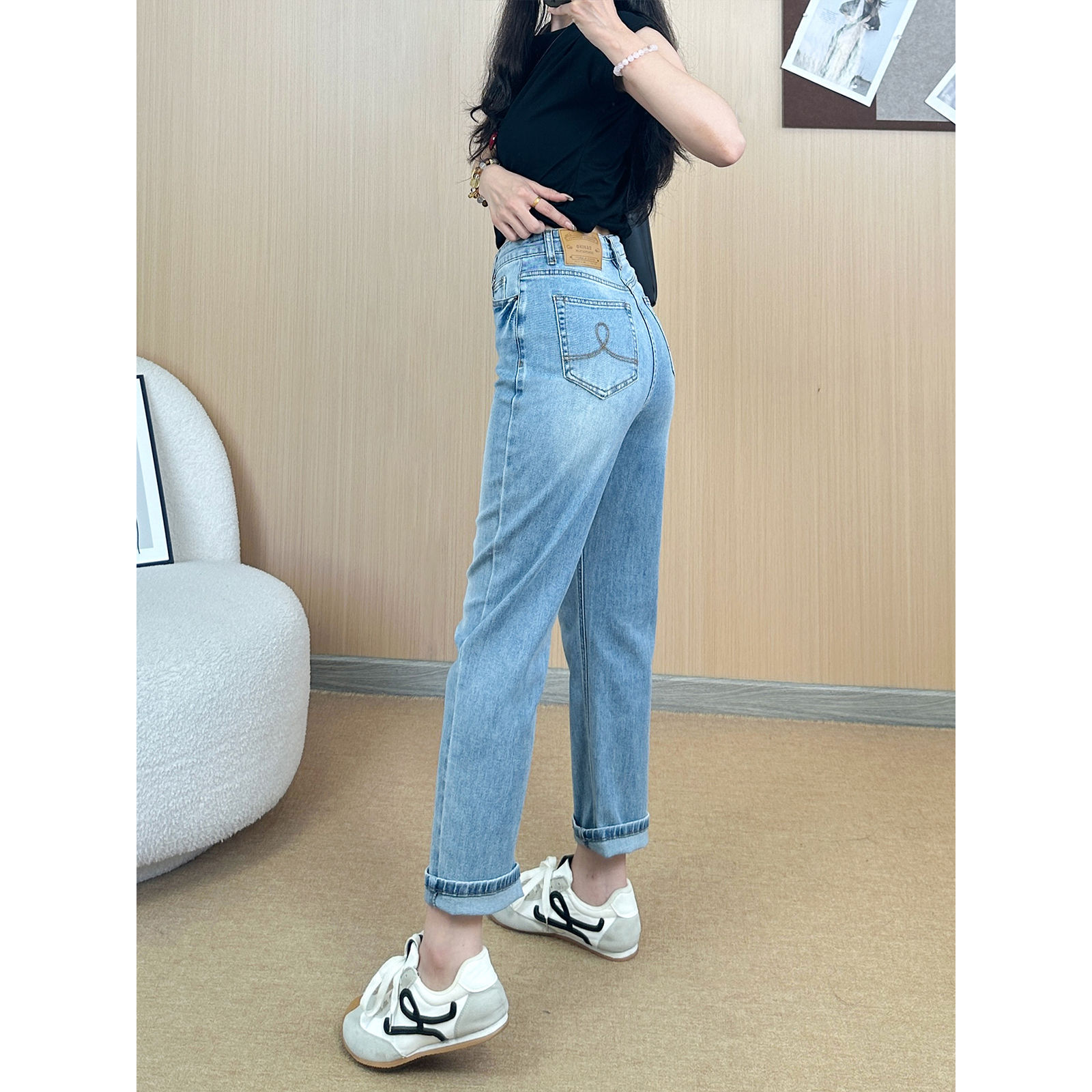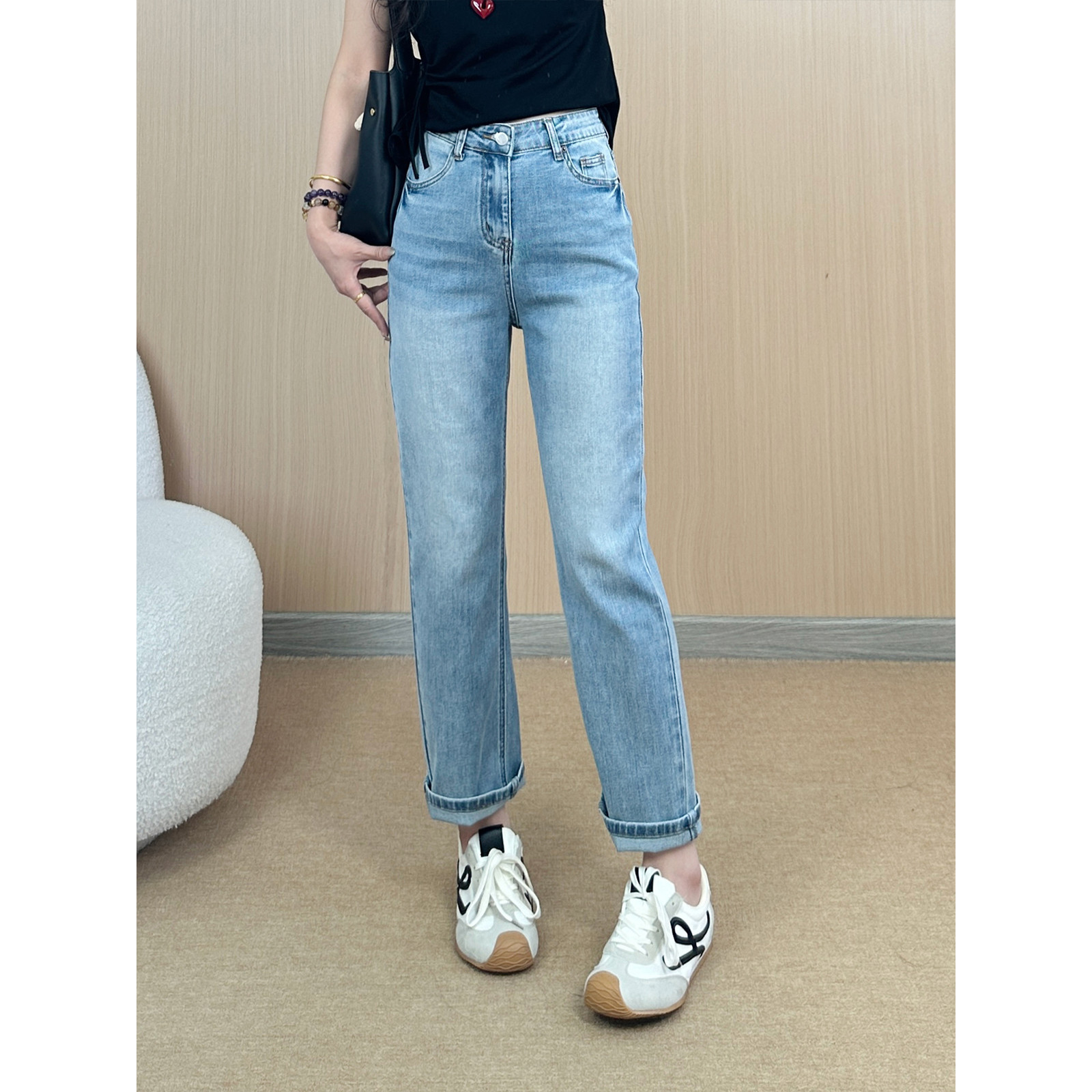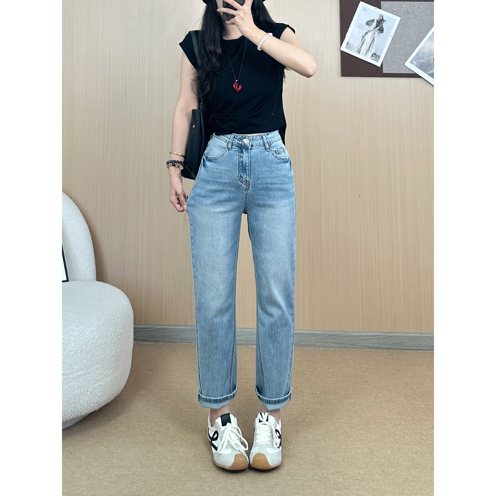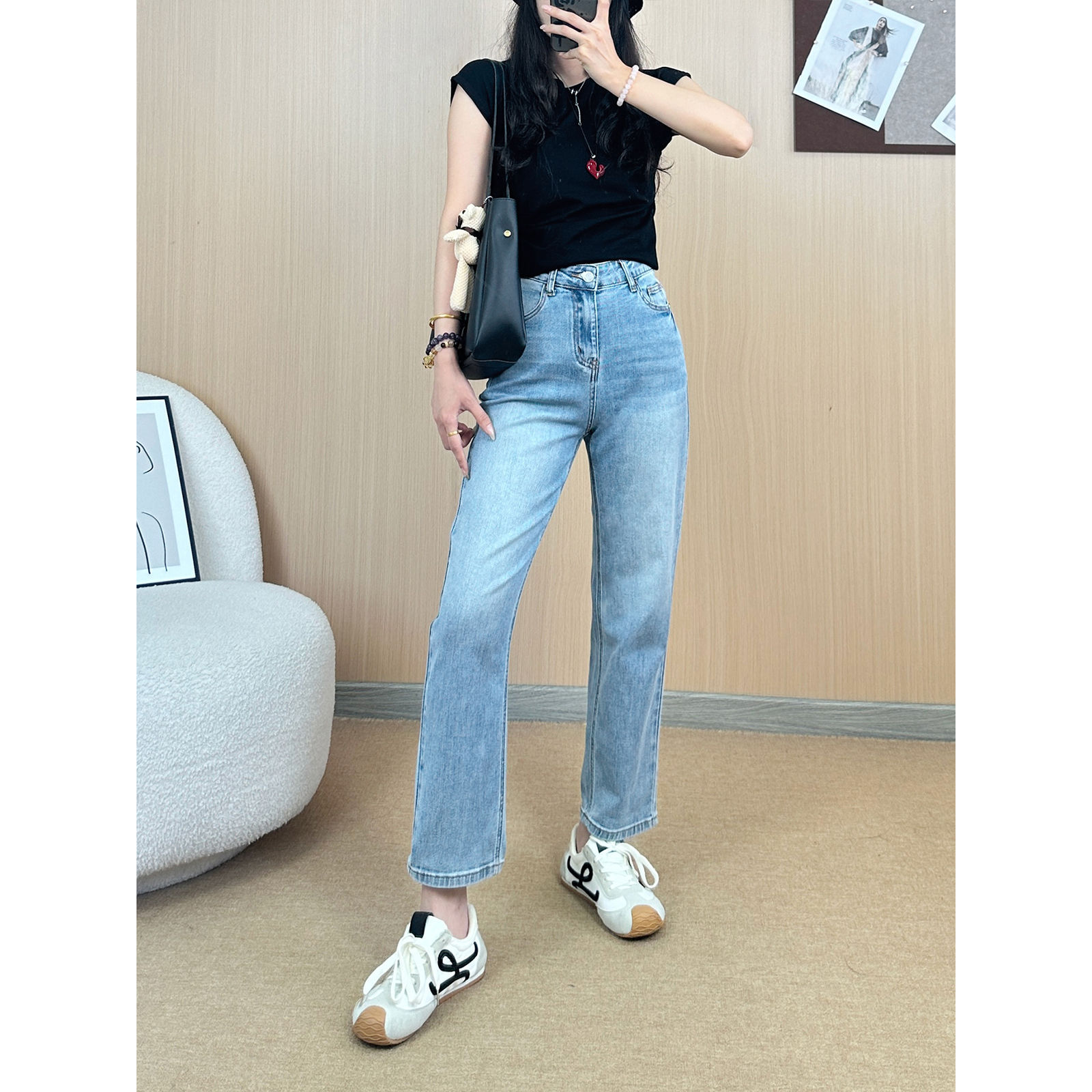 몸집이 작은 분들을 위한 슬림핏 청바지, 하이웨이스트 슬림 스트레이트 팬츠, 여성용 슬림핏 청바지, 작은 사이즈스토어 가기