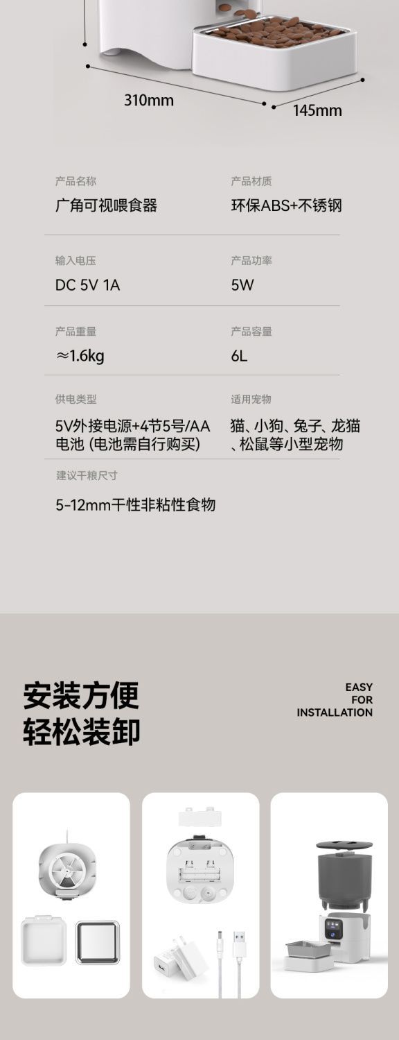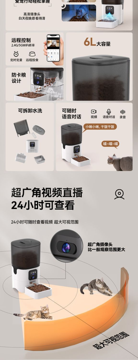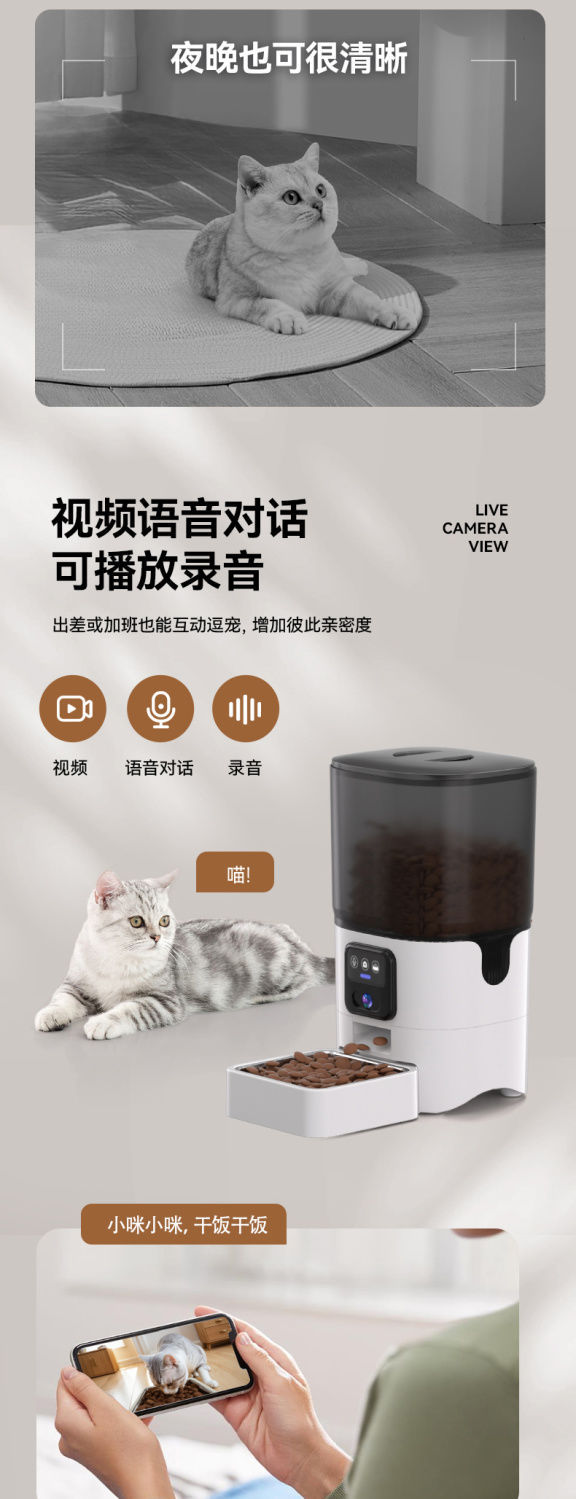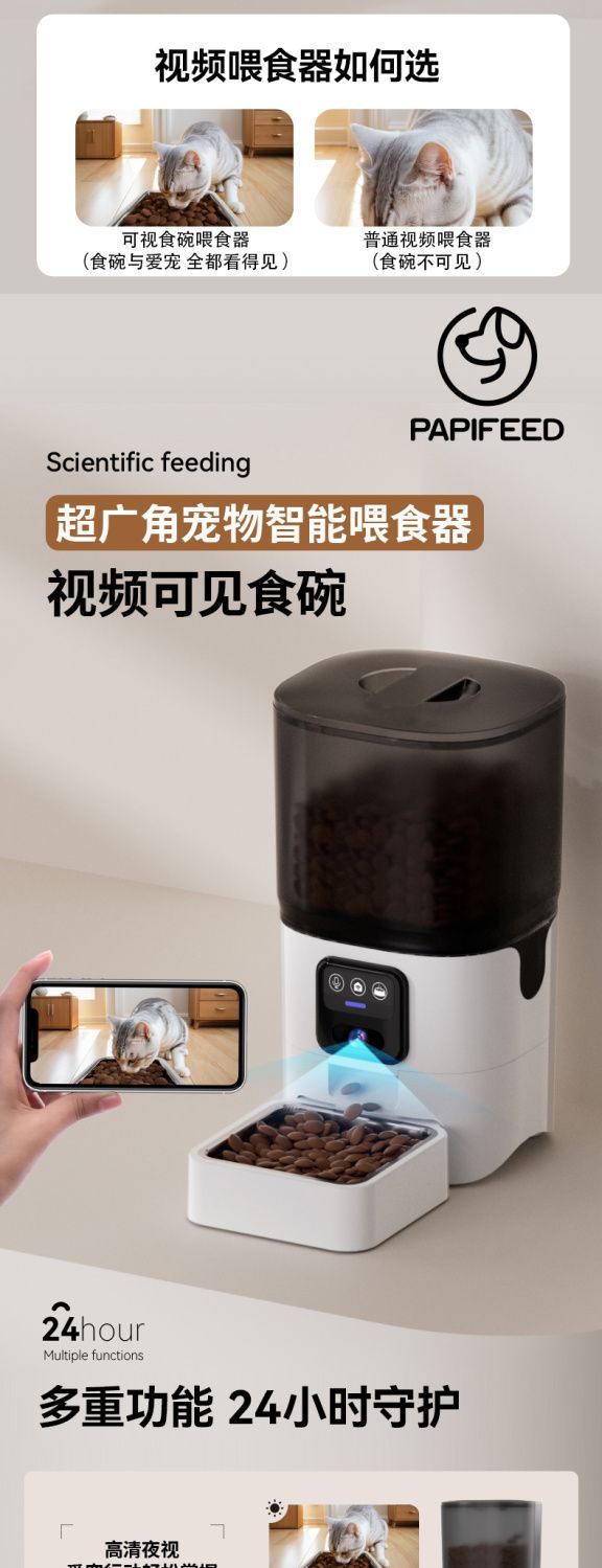 애완동물 자동 급식기 고양이 사료, 개 사료, 고양이 지능형 타이밍 Wi-Fi 원격 비디오 급식 Amazon스토어 가기