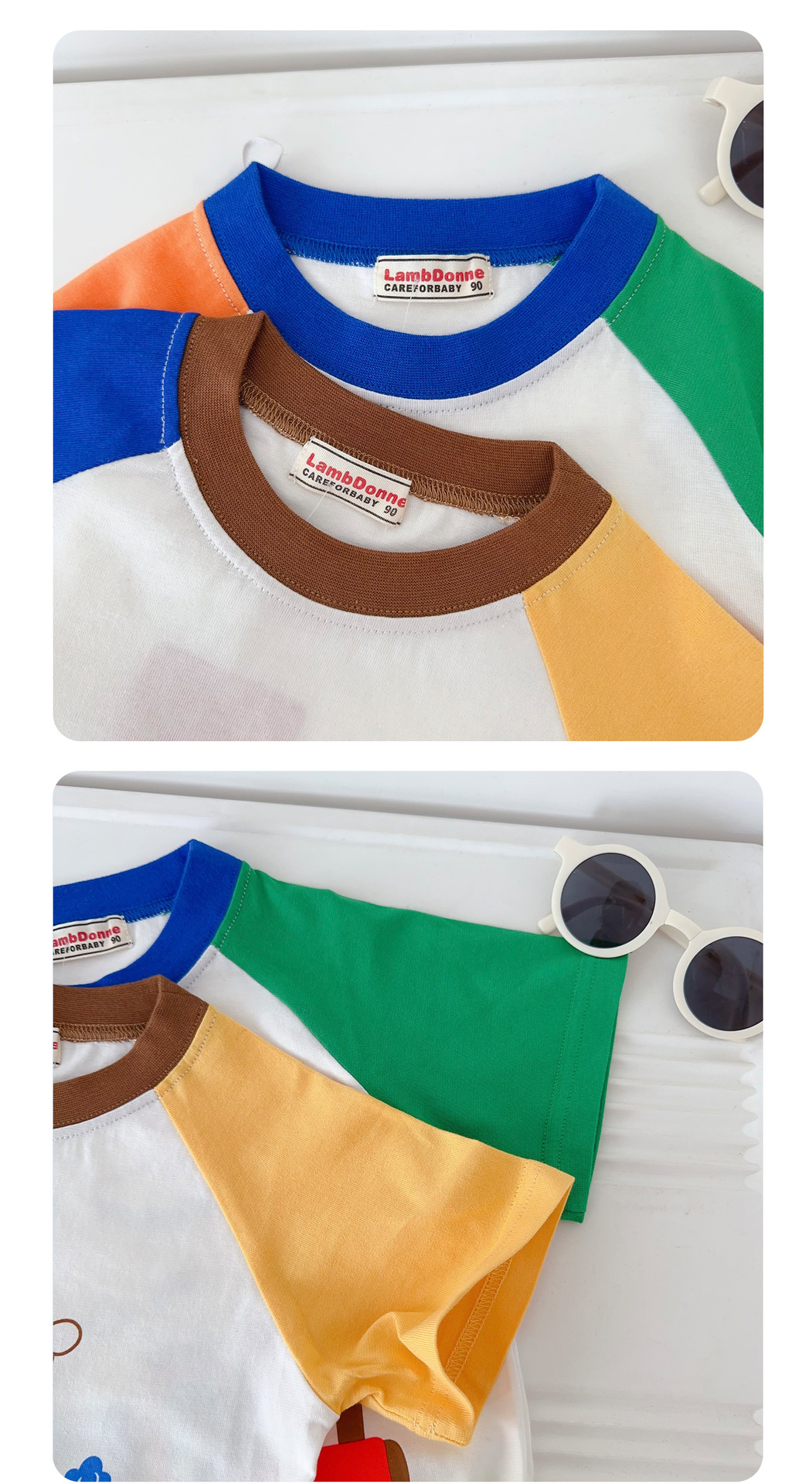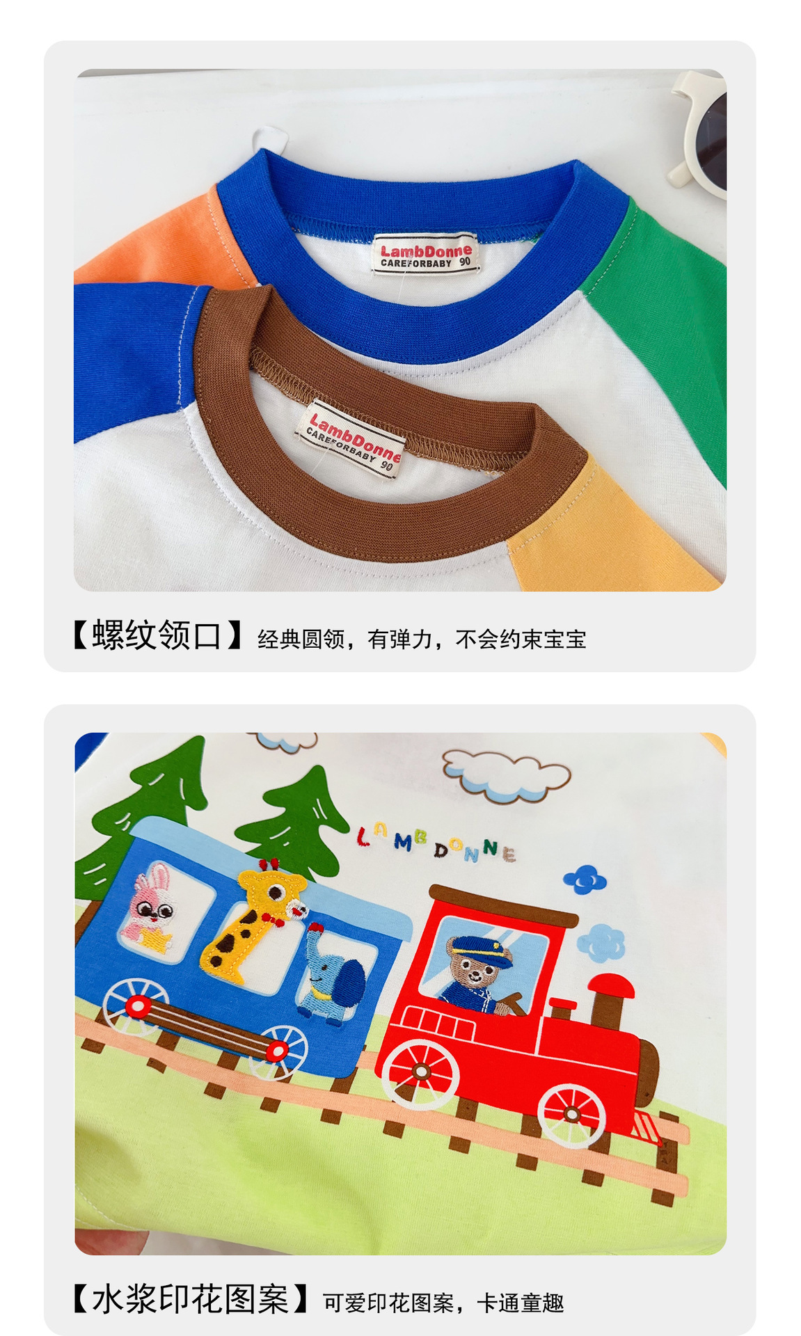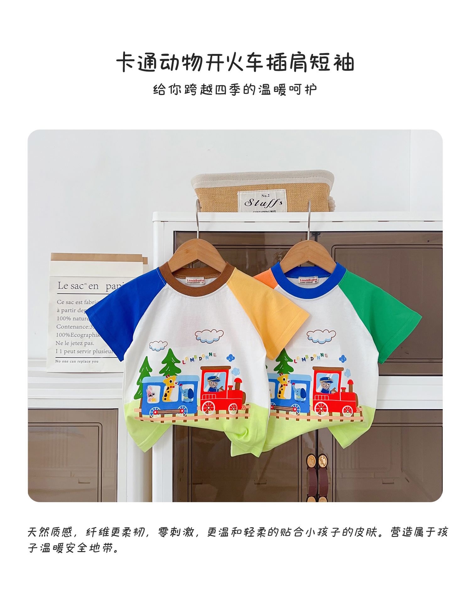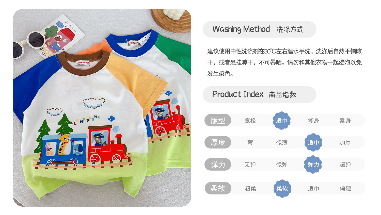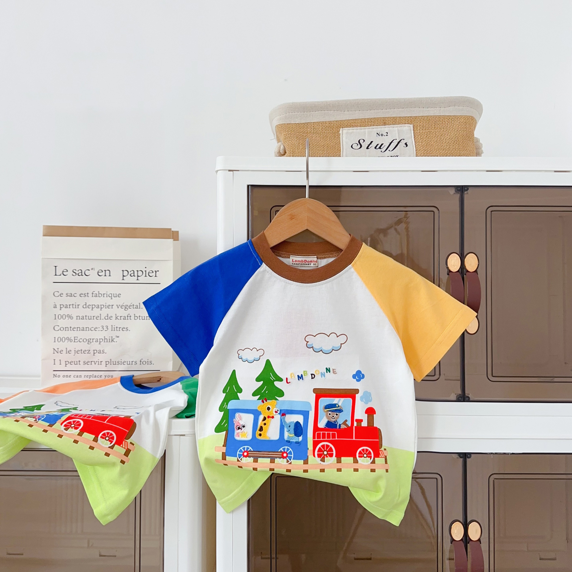 • 1604 열차 만화 반팔 주황색과 녹색 소매