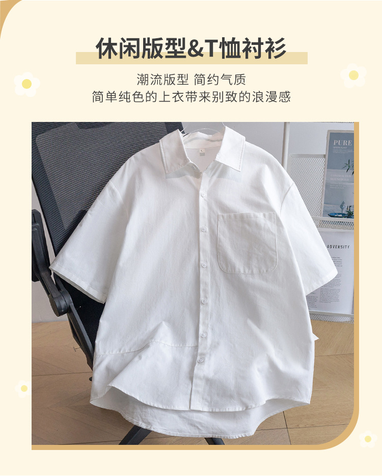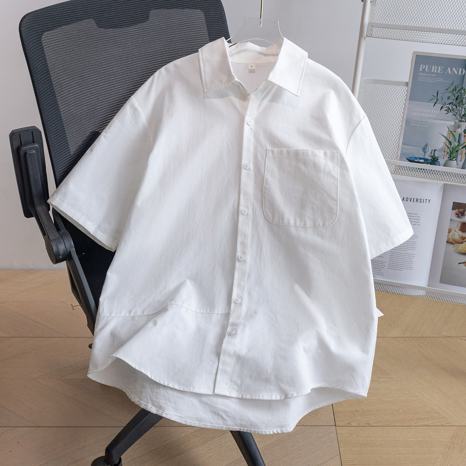 특별 가격 흰색 셔츠 남성 여름 새로운 스타일 캐주얼 라펠 포켓 통근 셔츠 루즈한 아버지와 아들 탑스토어 가기