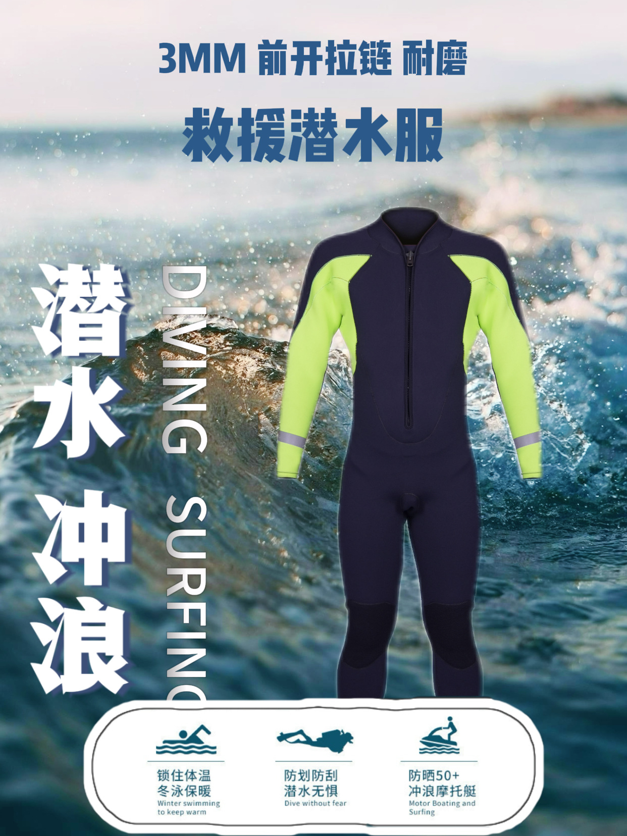 습식 수중 구조복 네오프렌 습식 보호복 내마모성 및 내한성 수중 구조 잠수복 원피스스토어 가기