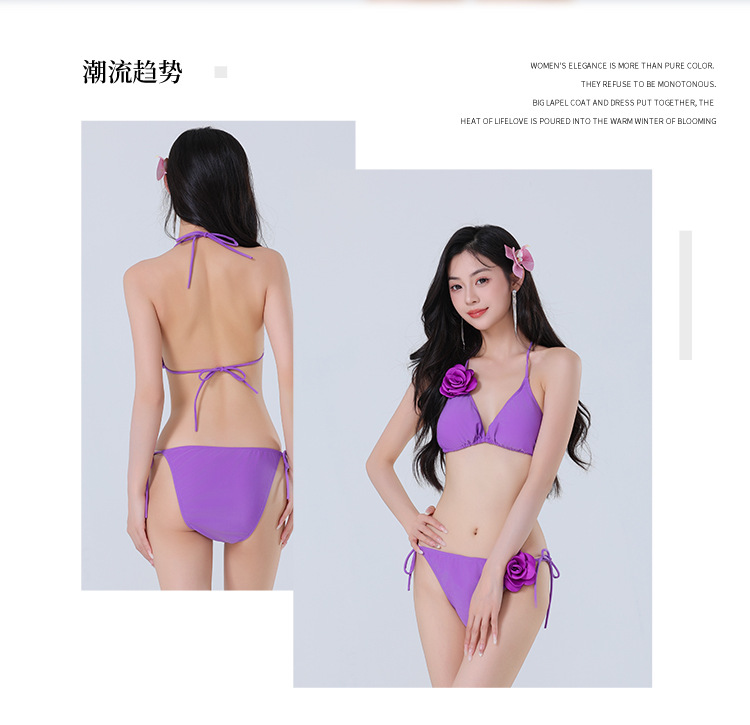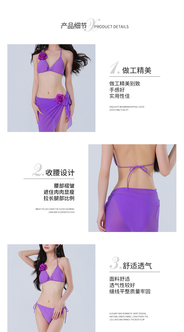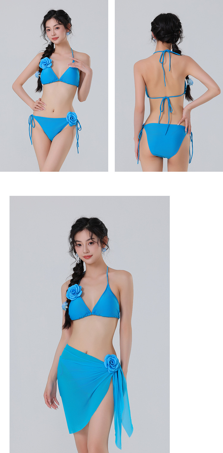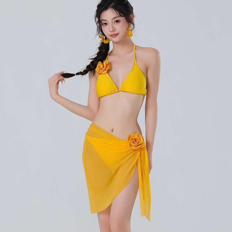 새로운 도착 솔리드 컬러 비키니 꽃 섹시한 수영복 편안한 빠른 건조 스플릿 3 피스 수영복 도매스토어 가기