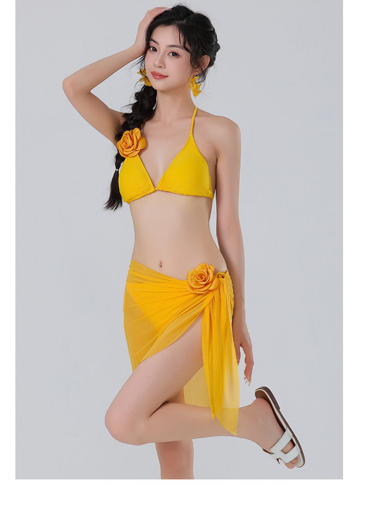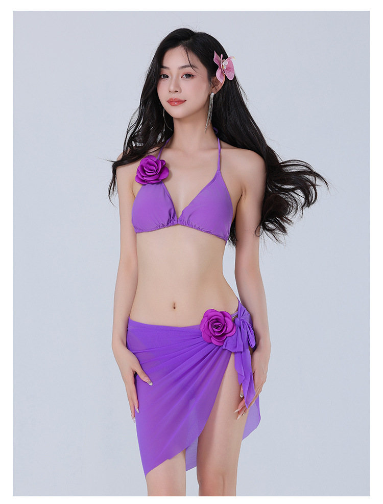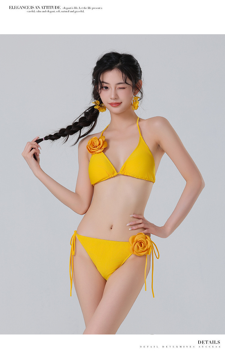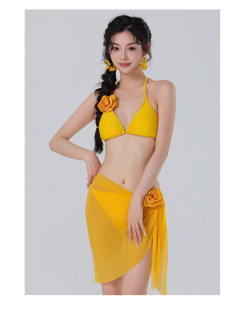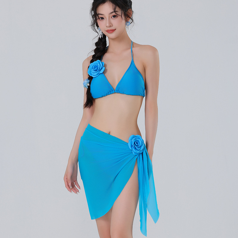새로운 도착 솔리드 컬러 비키니 꽃 섹시한 수영복 편안한 빠른 건조 스플릿 3 피스 수영복 도매스토어 가기