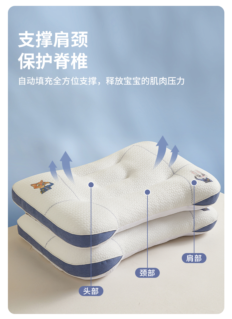 카테고리 A 만화 어린이 모양 베개, 경추 보호, 수면 보조, 단일 학생 전용 파티션 베개 코어, 모든 계절에 적합스토어 가기