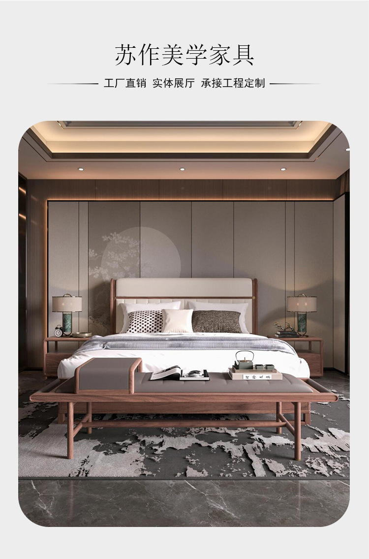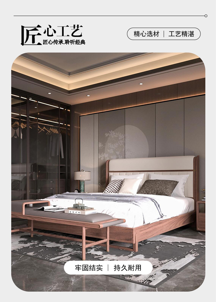 가벼운 럭셔리 새로운 중국 스타일 검은 호두 침대 현대 간단한 마스터 침실 웨딩 침대 송 스타일 미적 고급 더블 침대 빌라스토어 가기