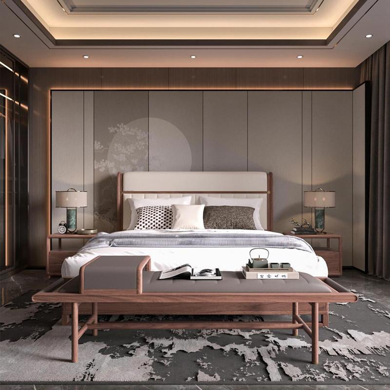 가벼운 럭셔리 새로운 중국 스타일 검은 호두 침대 현대 간단한 마스터 침실 웨딩 침대 송 스타일 미적 고급 더블 침대 빌라