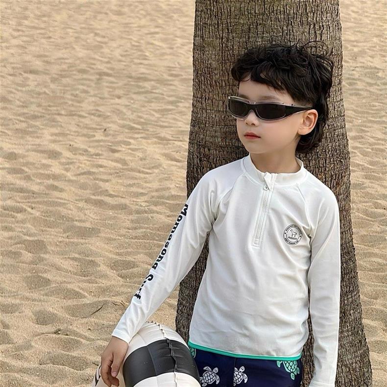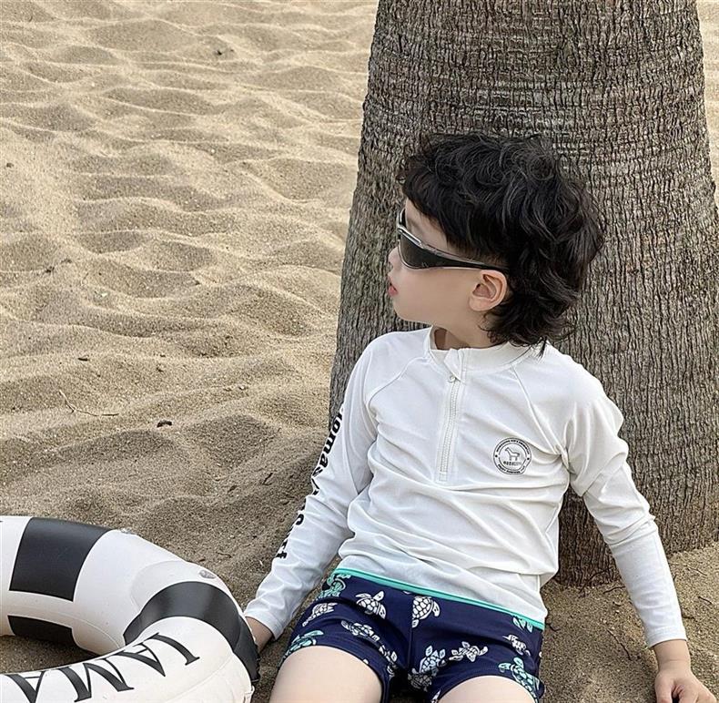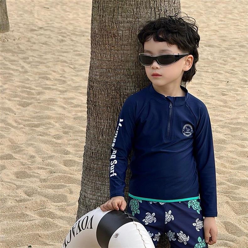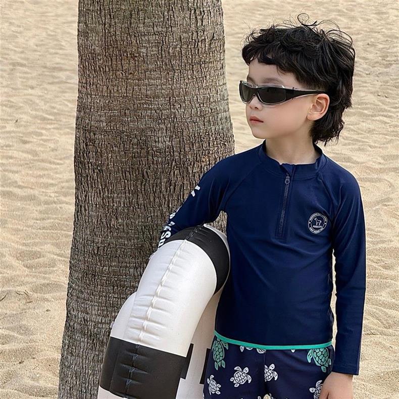 어린이 속건성 수영복 소년 2025 여름 새 소년 긴팔 수영복 해변 휴가 스타일 수영복