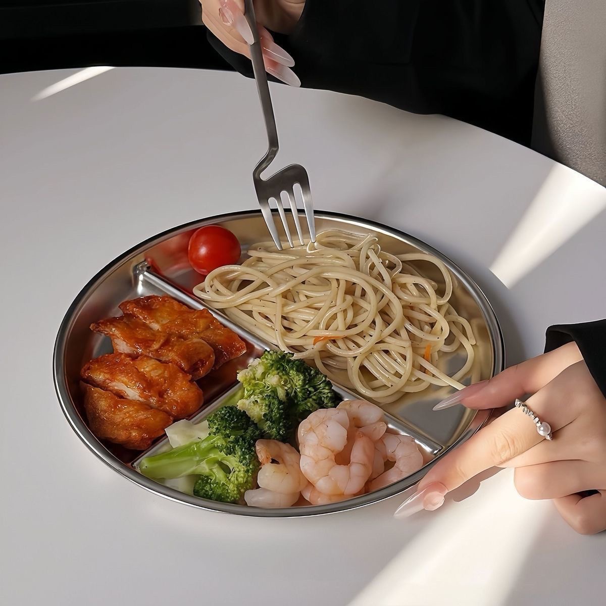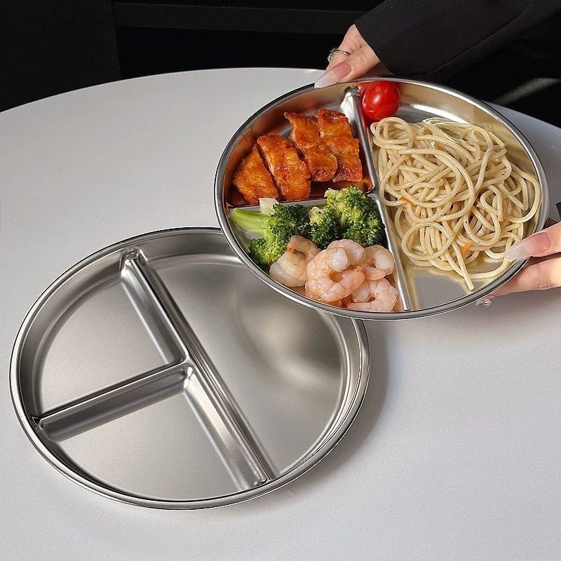 304 스테인리스 스틸 분할 디너 플레이트, 정량 3칸 원형 디스크, 성인용 지방 감량 디너 플레이트, 학생용 정량 디너 플레이트