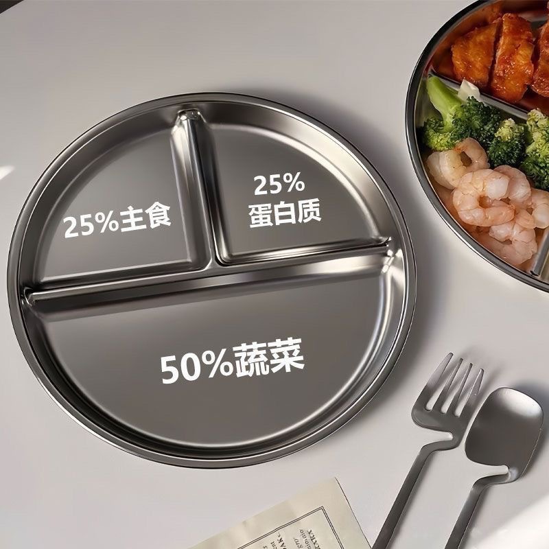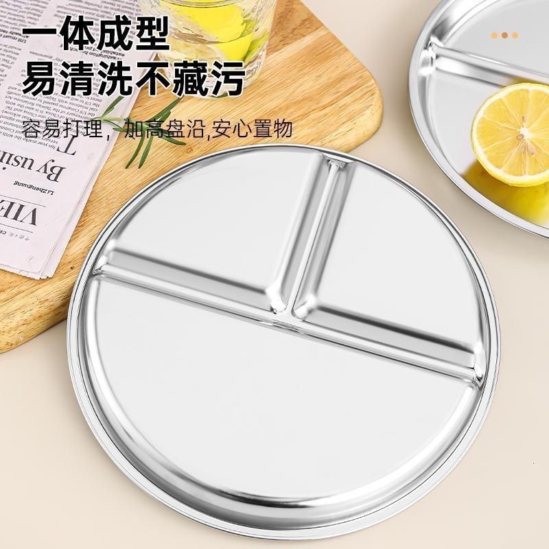 304 스테인리스 스틸 분할 디너 플레이트, 정량 3칸 원형 디스크, 성인용 지방 감량 디너 플레이트, 학생용 정량 디너 플레이트스토어 가기