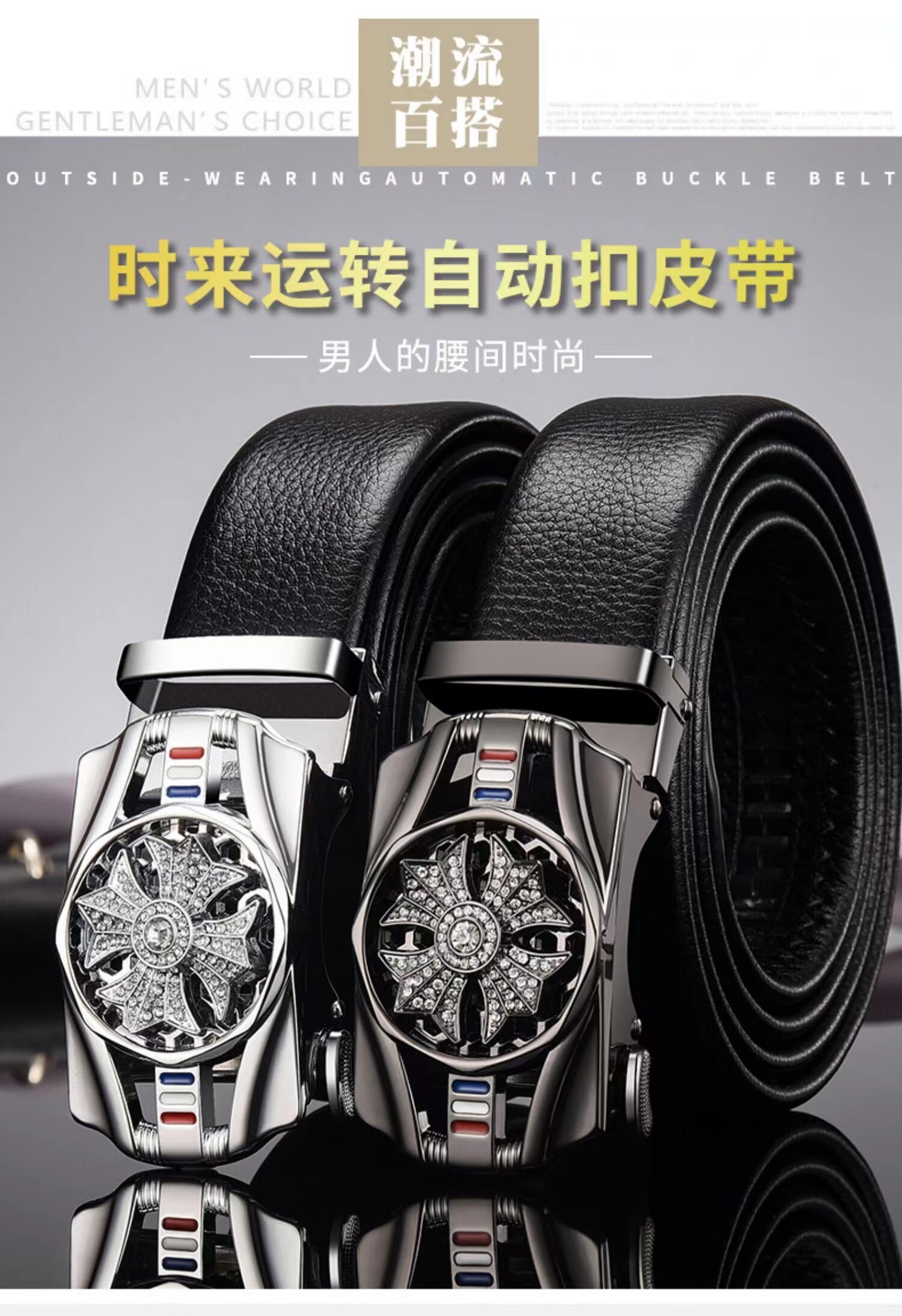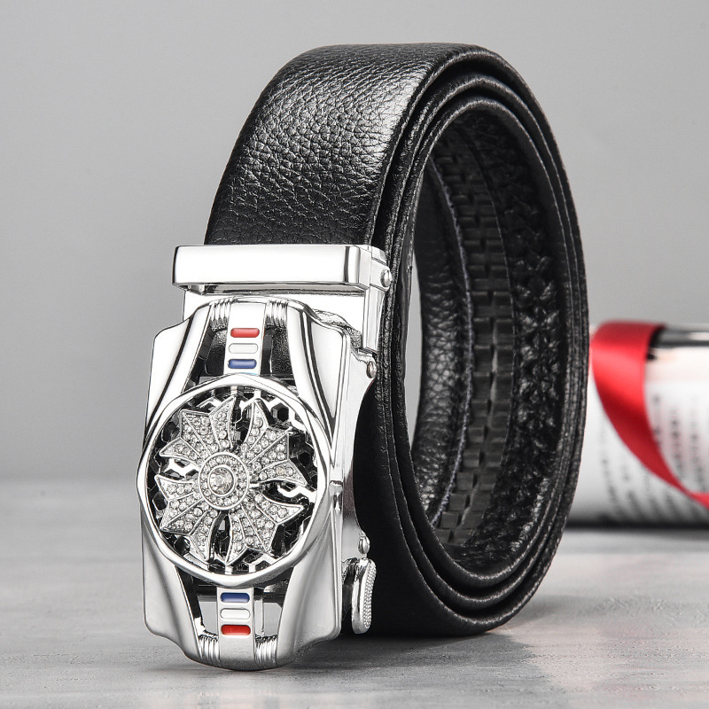 젊은 남성과 중년 남성을 위한 시라이런트 자동 버클 벨트, 패셔너블하고 다재다능하며 내구성이 뛰어난 스포츠카 스타일의 인터넷 연예인 트렌드스토어 가기