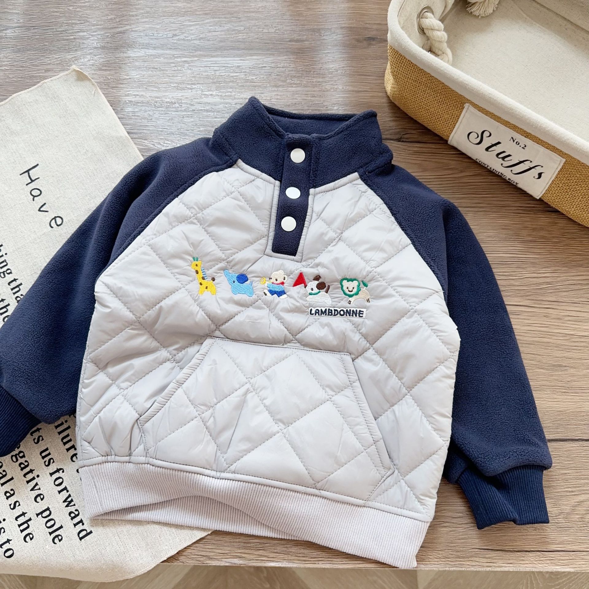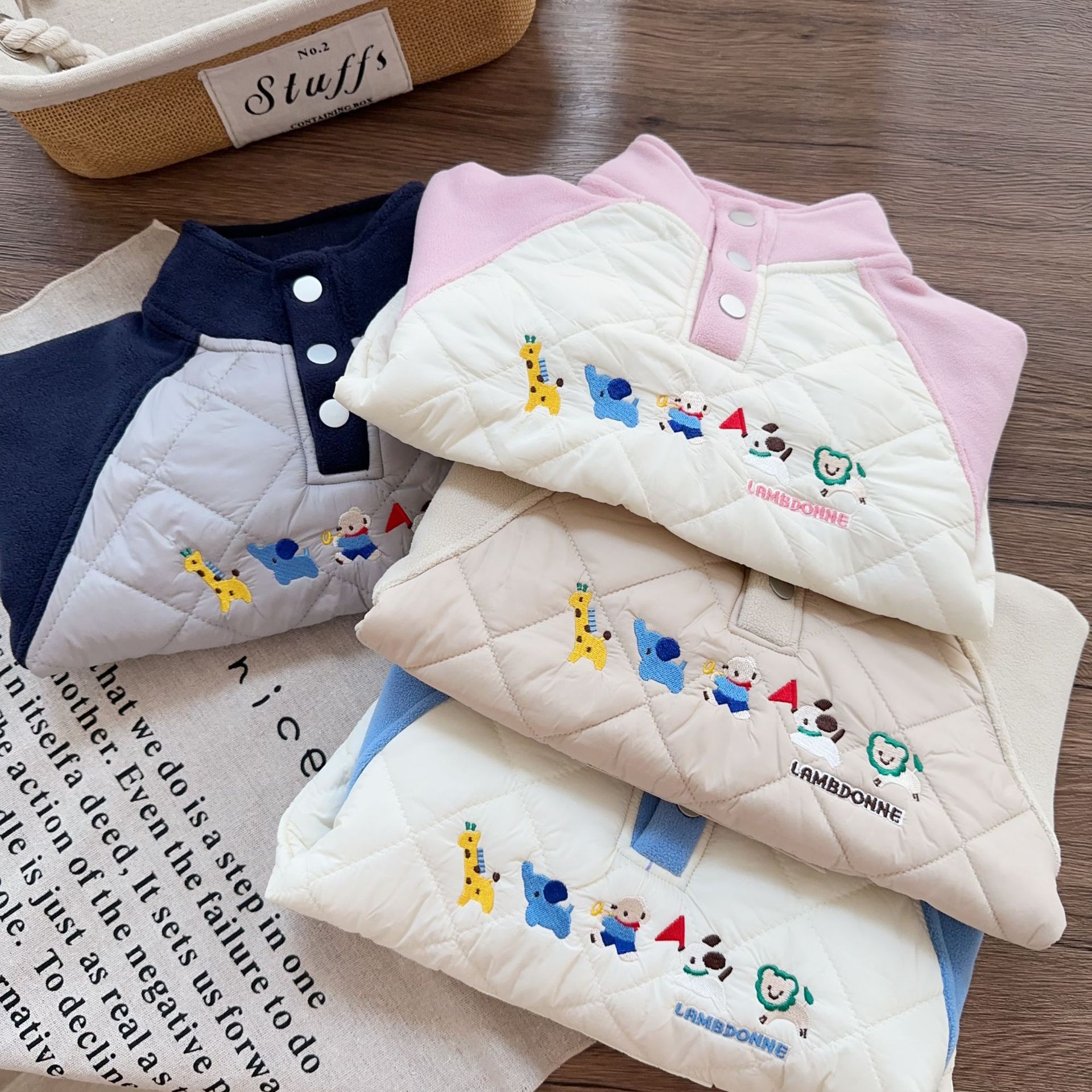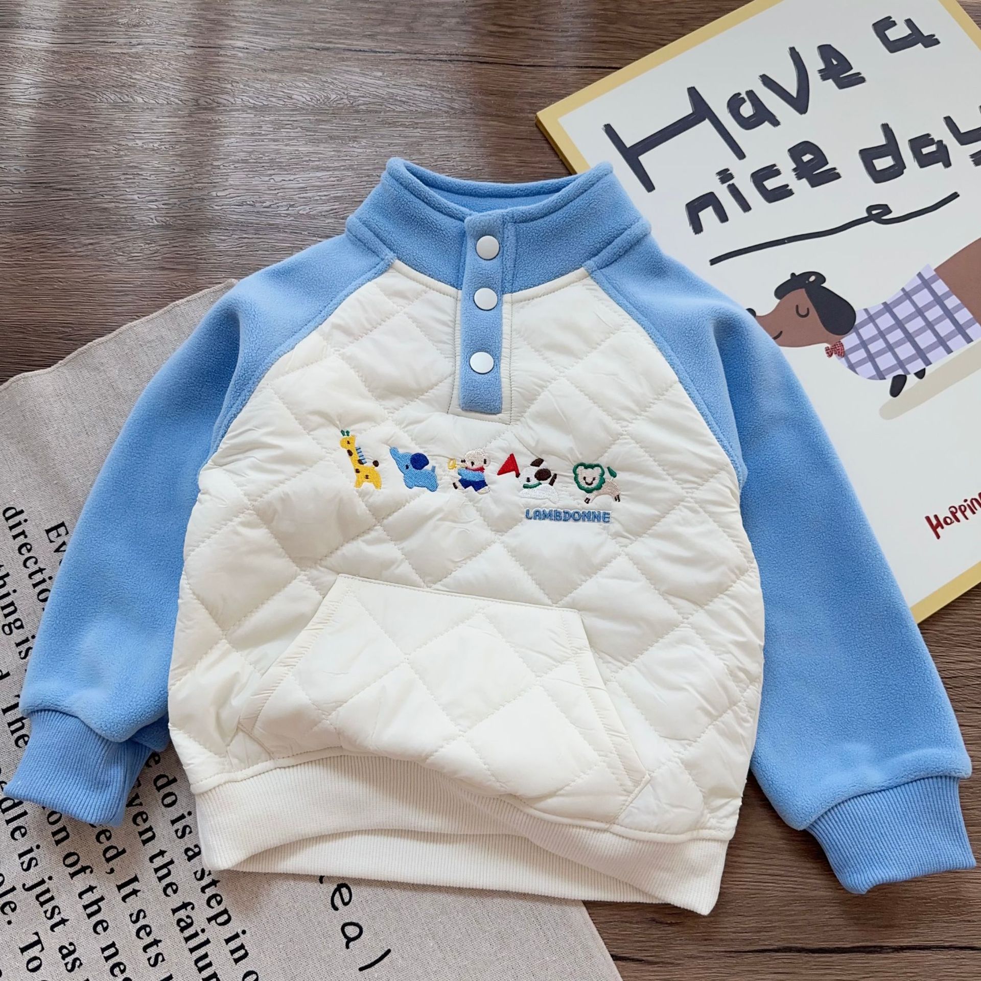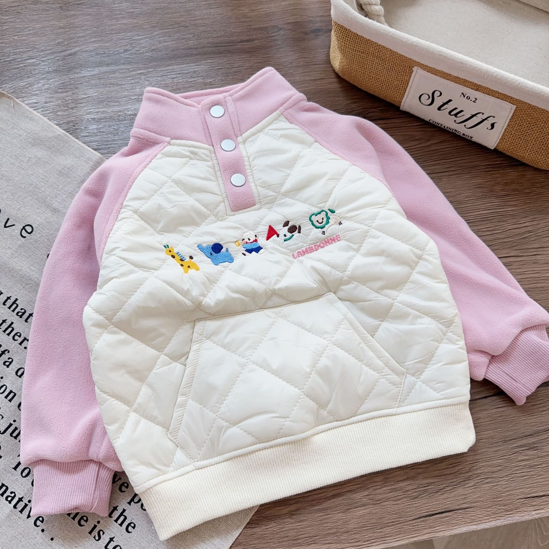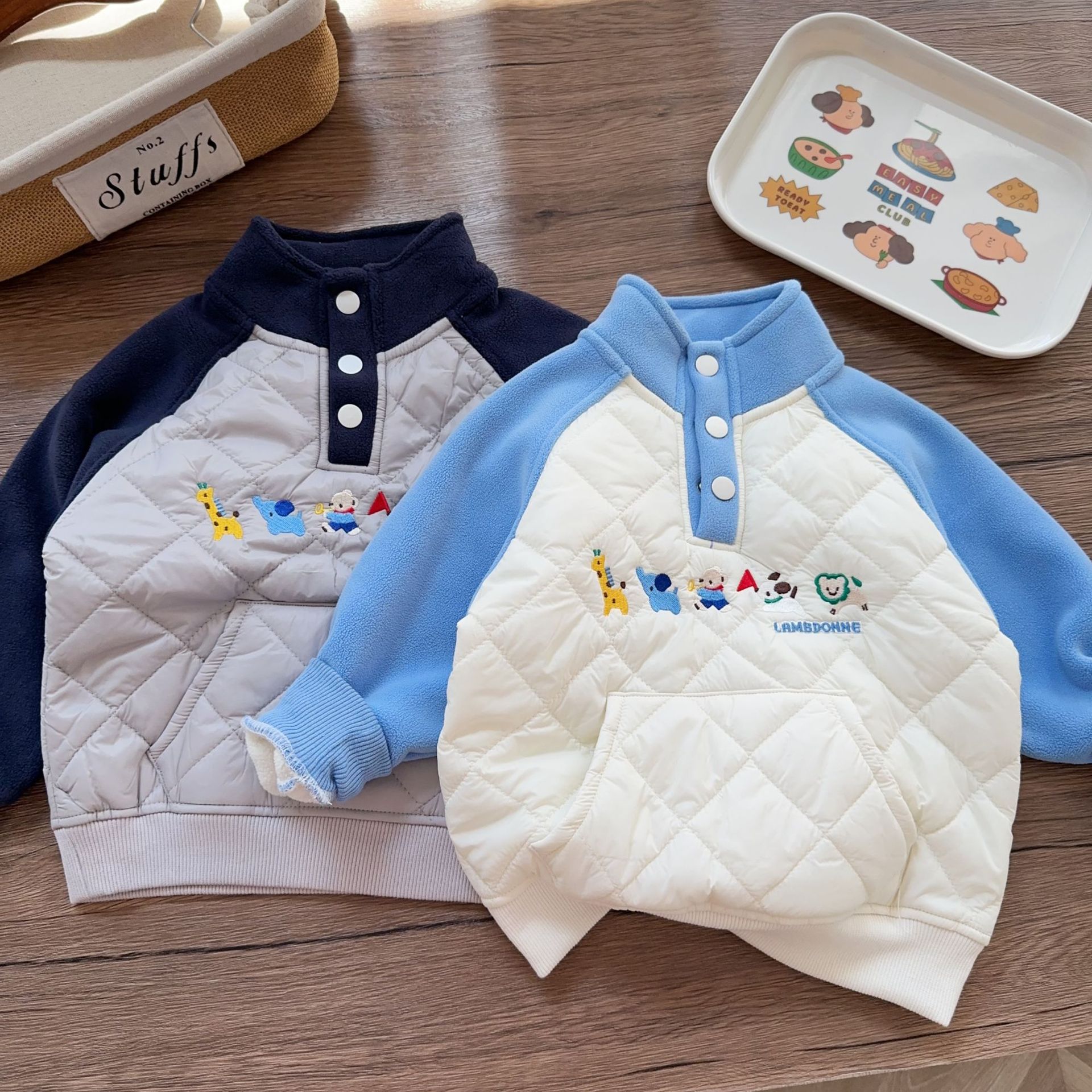 아동용 스웨트셔츠 25 가을 스타일 남아 여아용 기모 스웨트셔츠 유아용 스웨트셔츠 두꺼운 기모 스웨트셔츠 기성품 다운 코튼 풀오버 스웨트셔츠