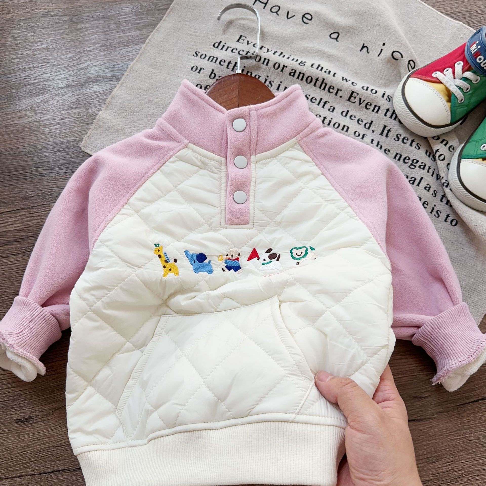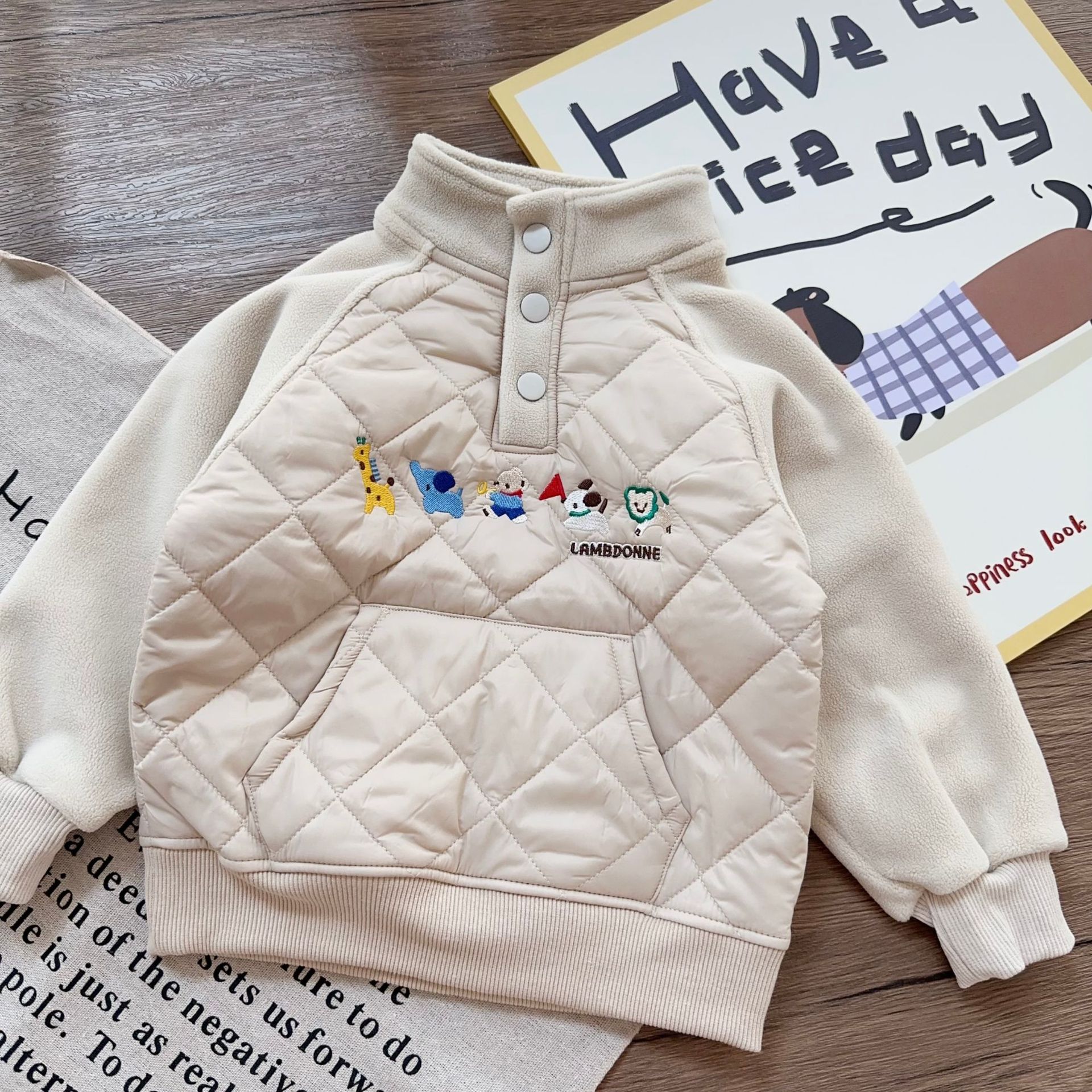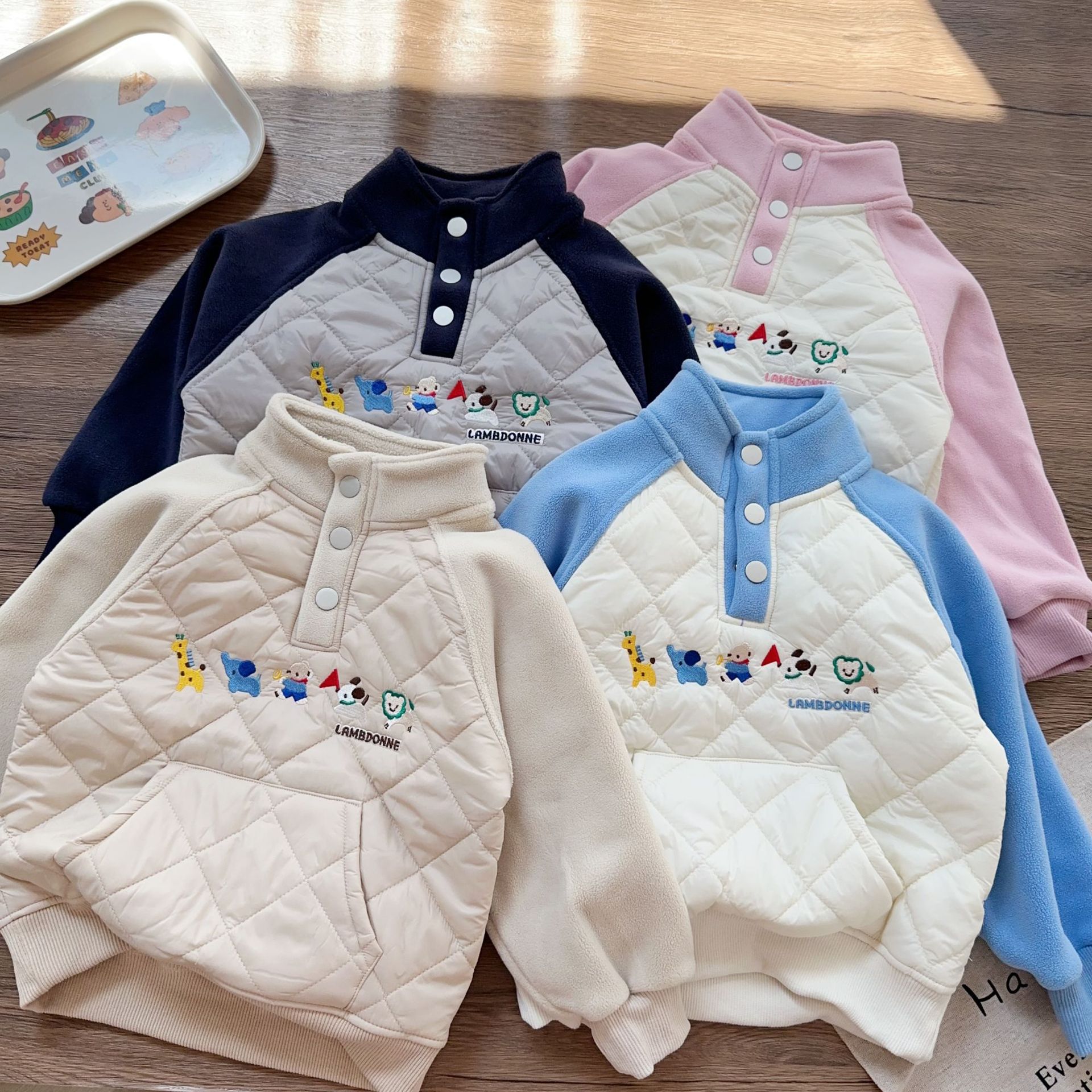 아동용 스웨트셔츠 25 가을 스타일 남아 여아용 기모 스웨트셔츠 유아용 스웨트셔츠 두꺼운 기모 스웨트셔츠 기성품 다운 코튼 풀오버 스웨트셔츠스토어 가기