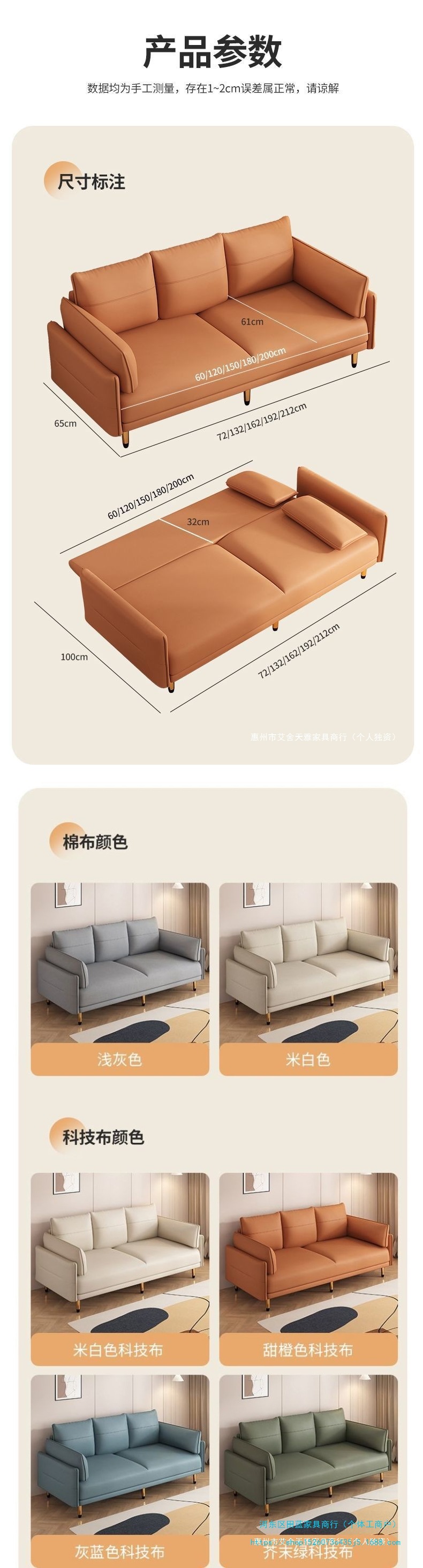 북유럽 패브릭 소파 접이식 다기능 간단한 작은 아파트 거실 임대 게으른 소파 침대 이중 용도 싱글