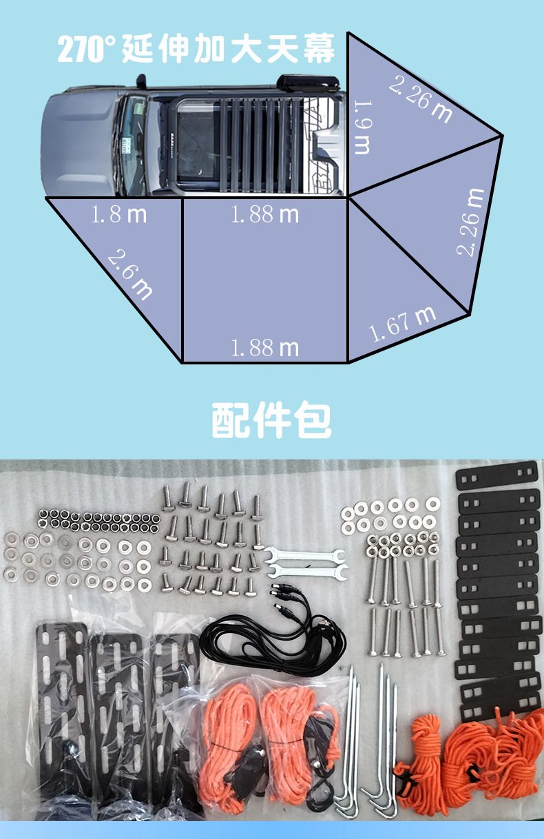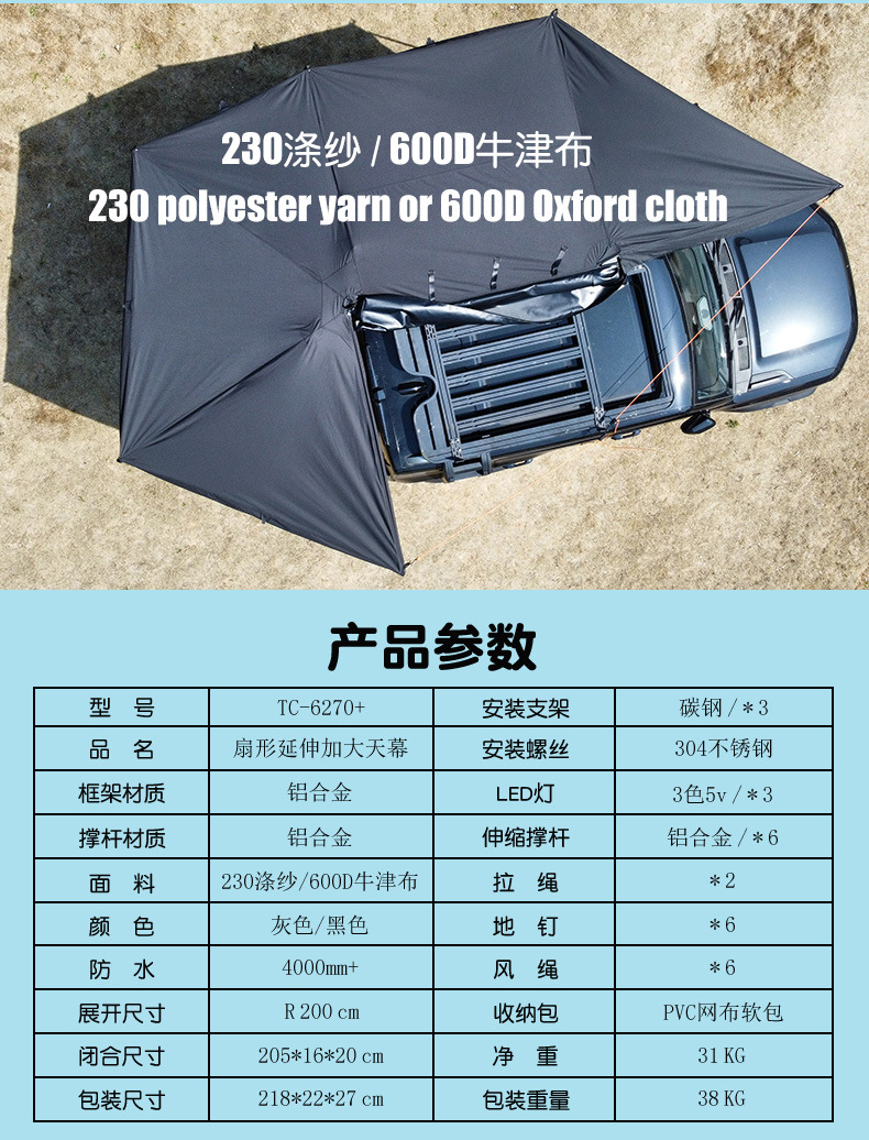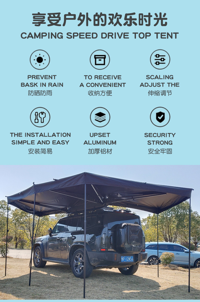 270 확장형 대형 차량용 캠핑 텐트, 알루미늄 합금 옥스포드 천 텐트, 이동식 방수 차양막