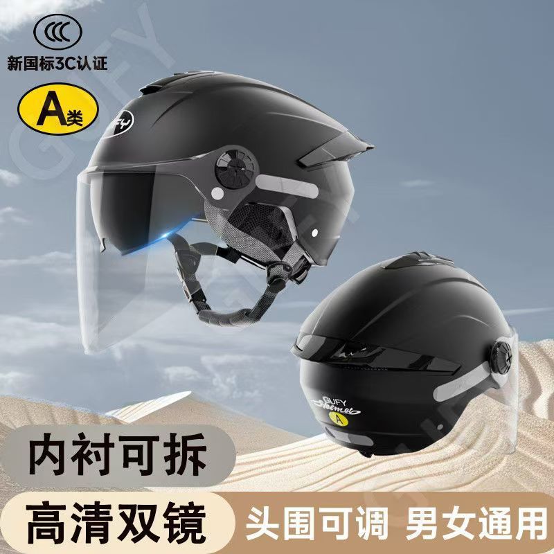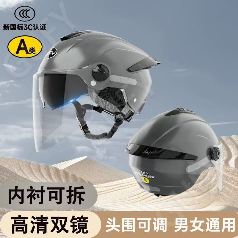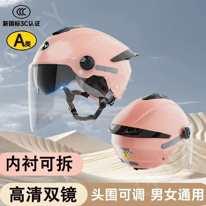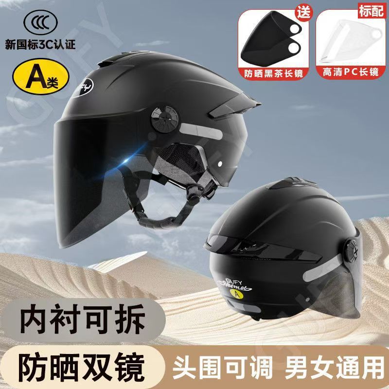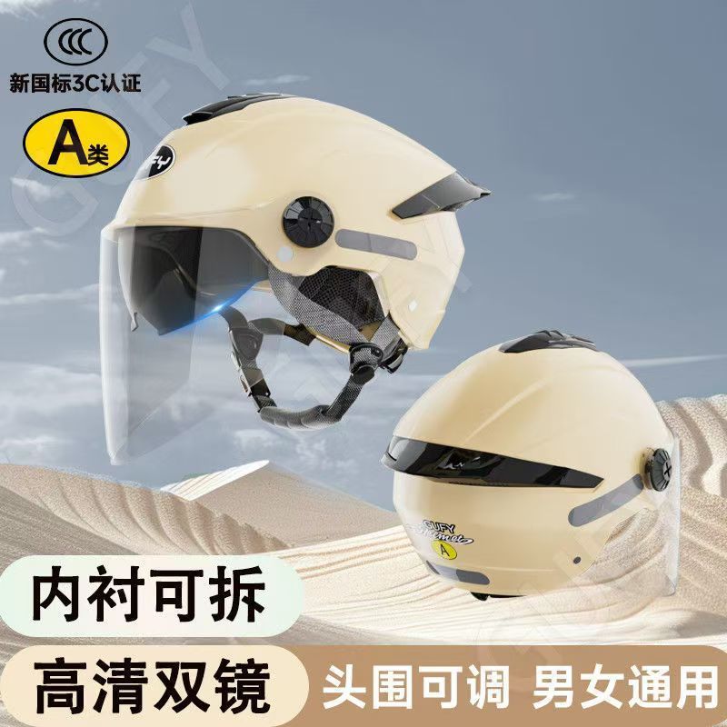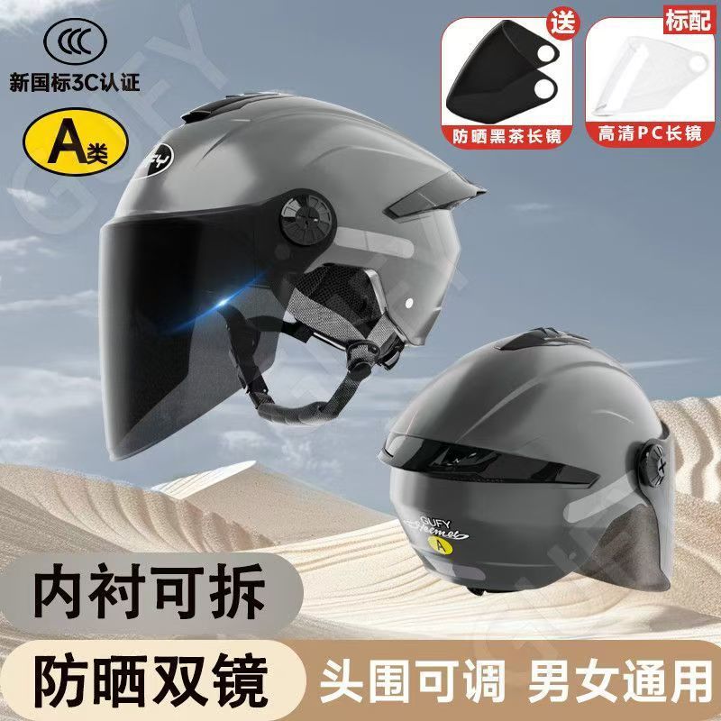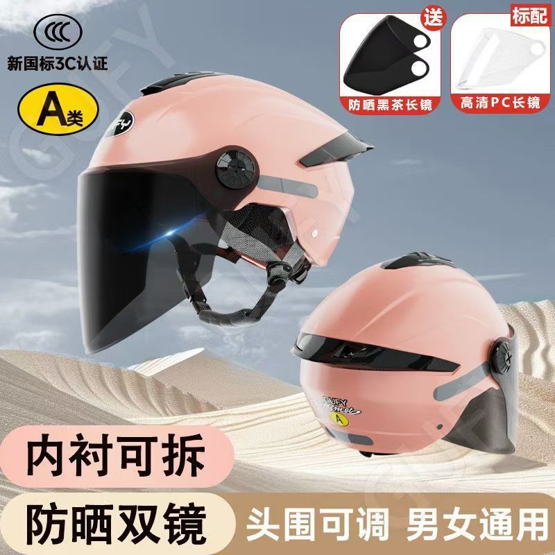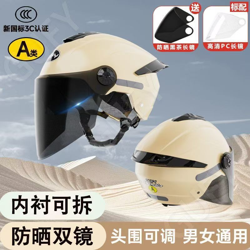 여름 자외선 차단 이중 거울 전기 자동차 헬멧, 사계절 남성 및 여성 오토바이 탑승 헬멧에 적합