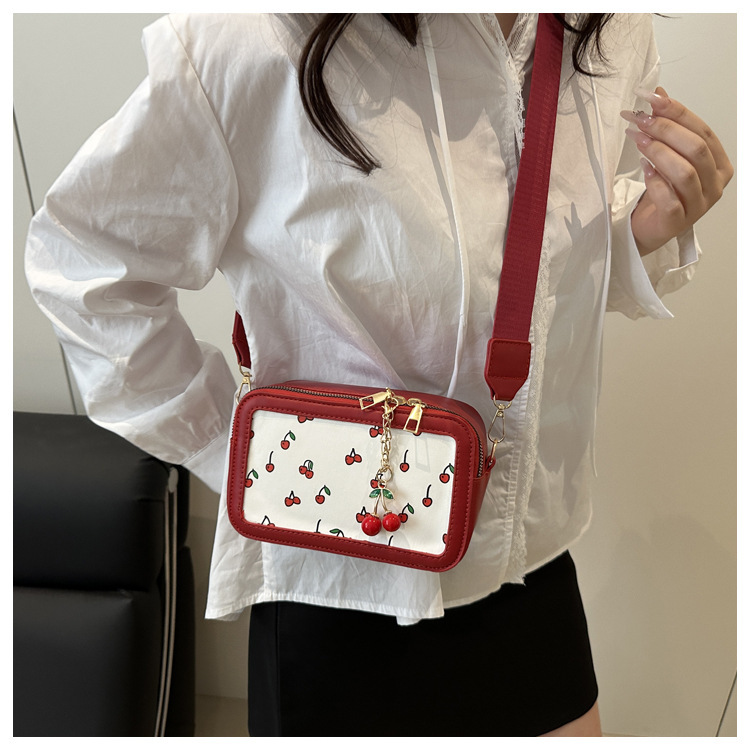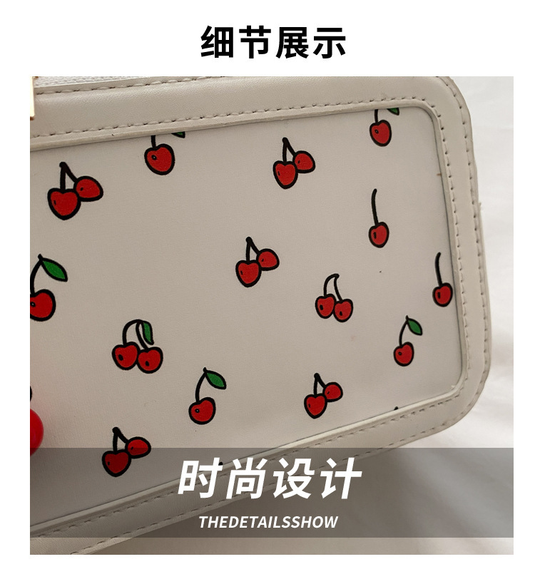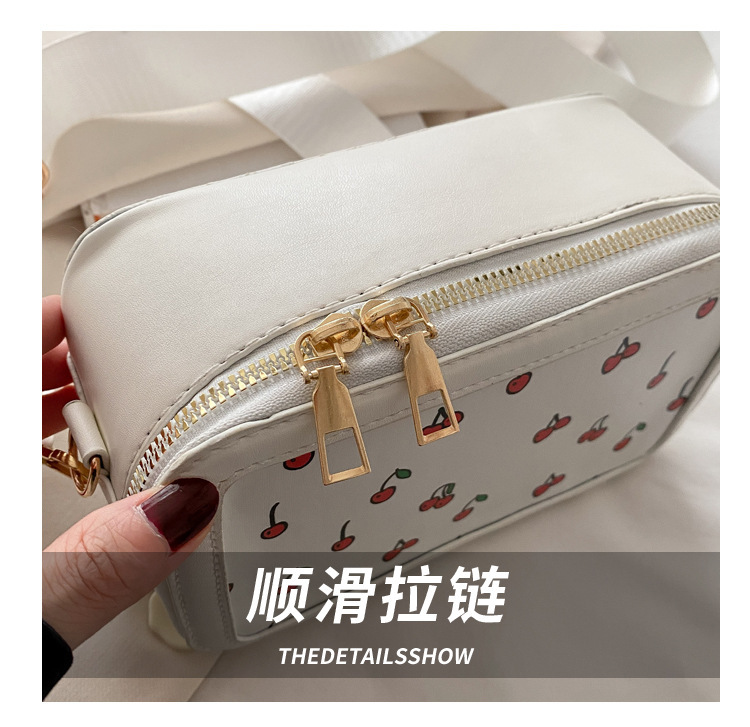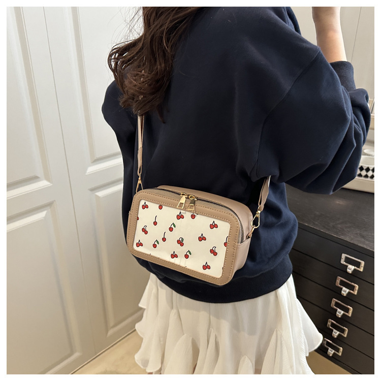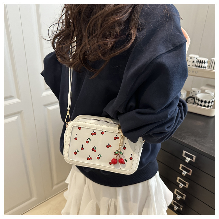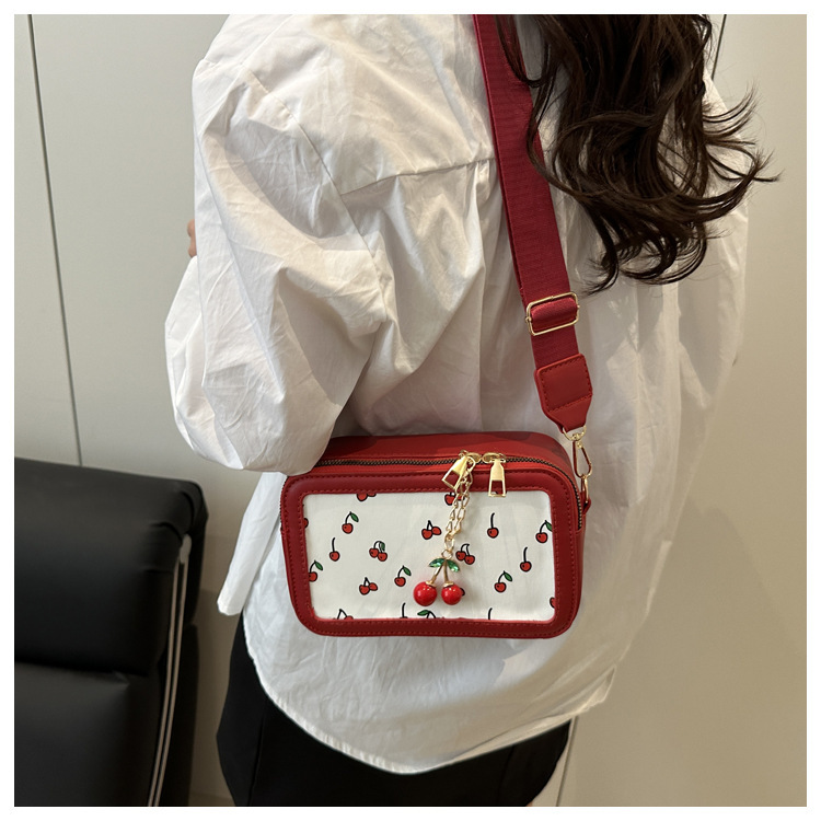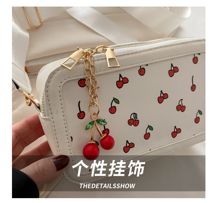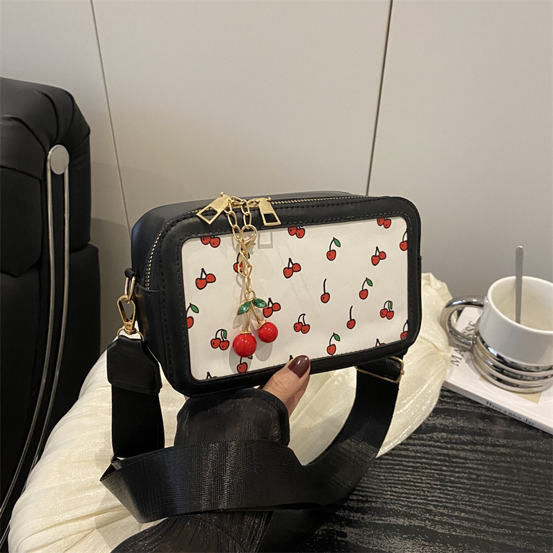 패션 통근 체리 사각형 가방 2025 새로운 유행 소녀 핸드백 간단한 인쇄 어깨 카메라 가방