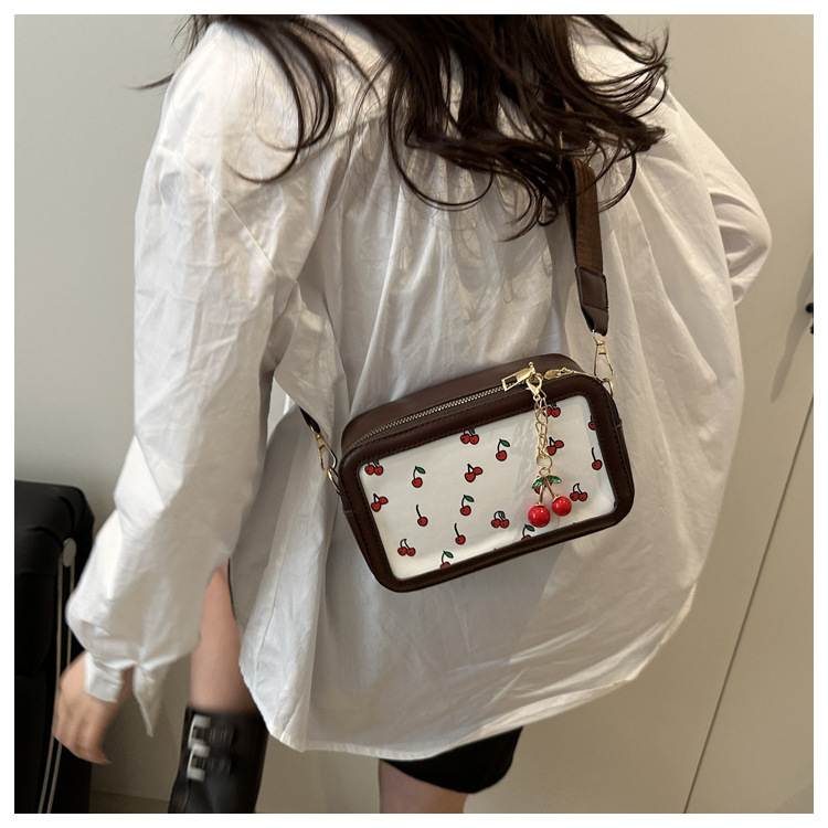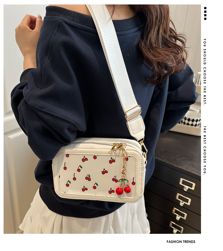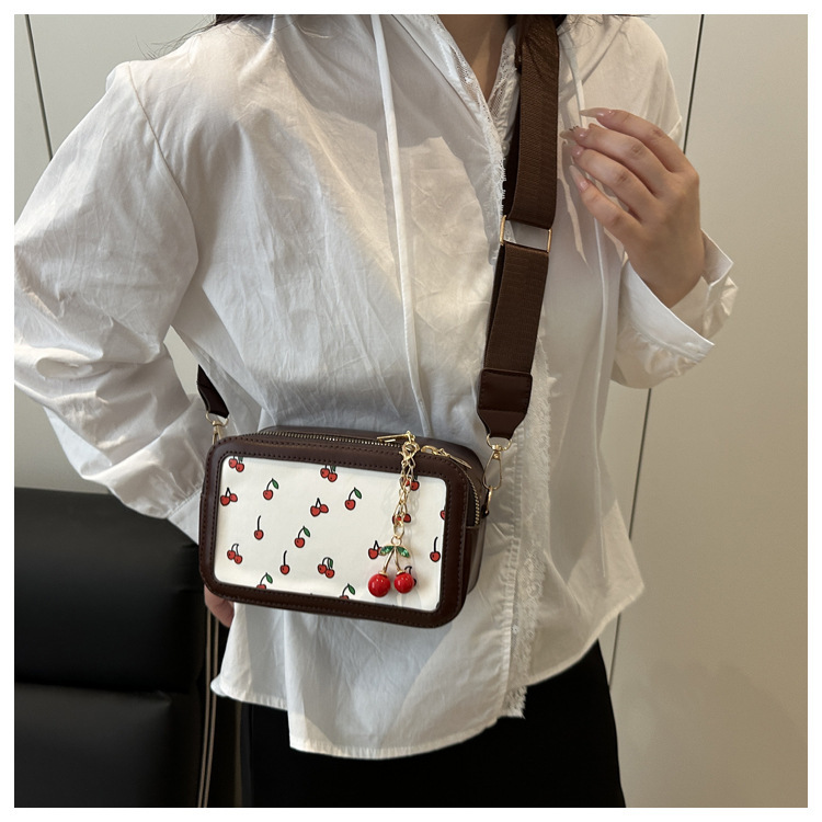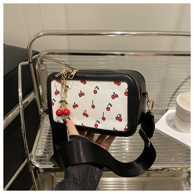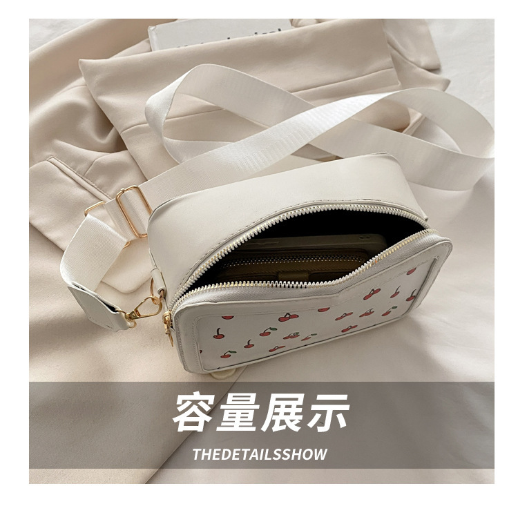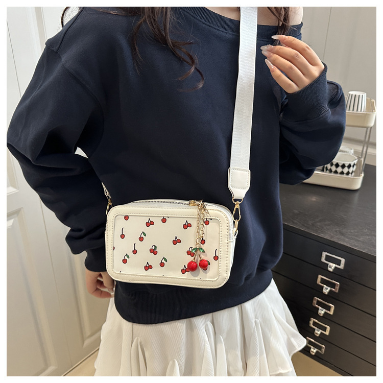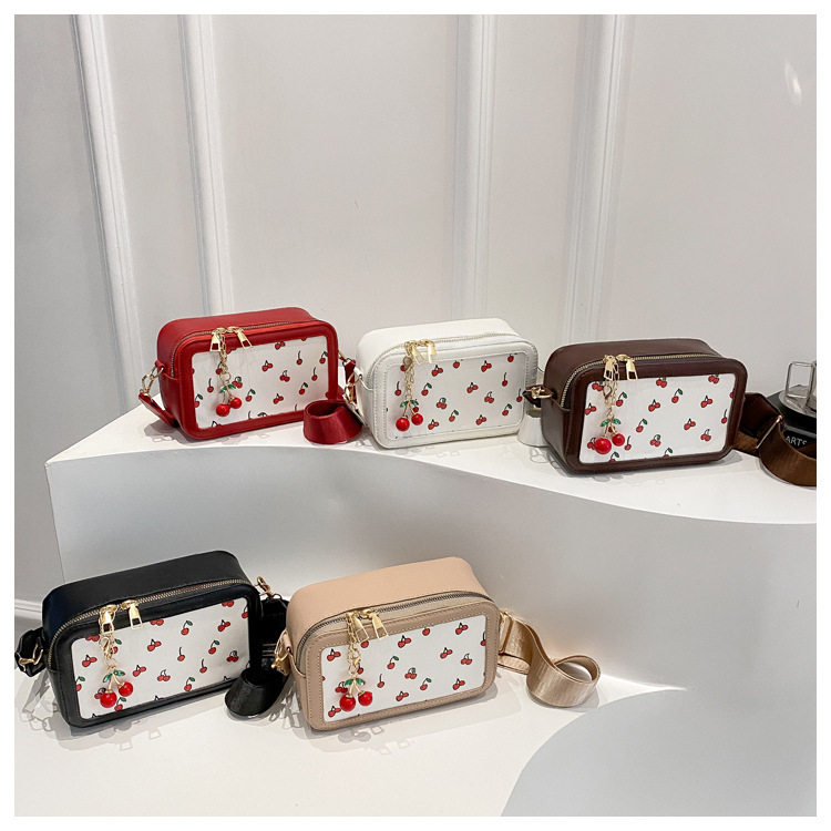 패션 통근 체리 사각형 가방 2025 새로운 유행 소녀 핸드백 간단한 인쇄 어깨 카메라 가방