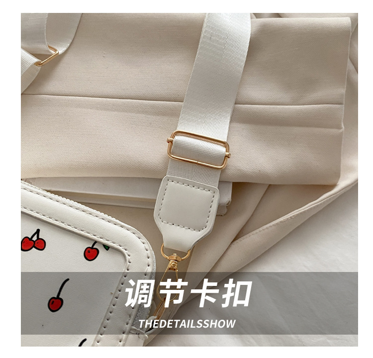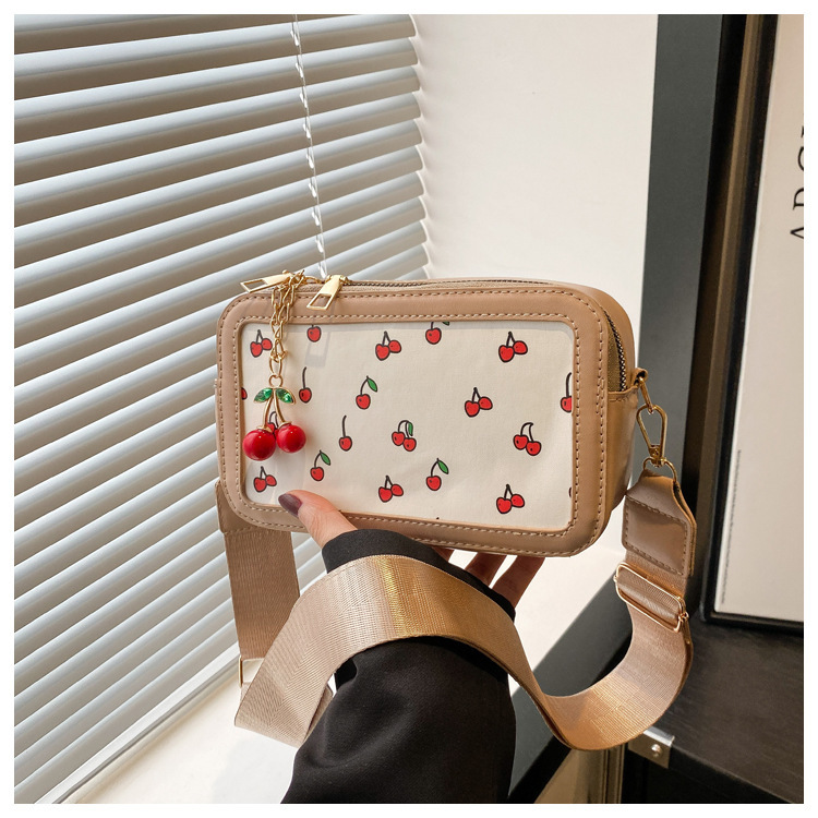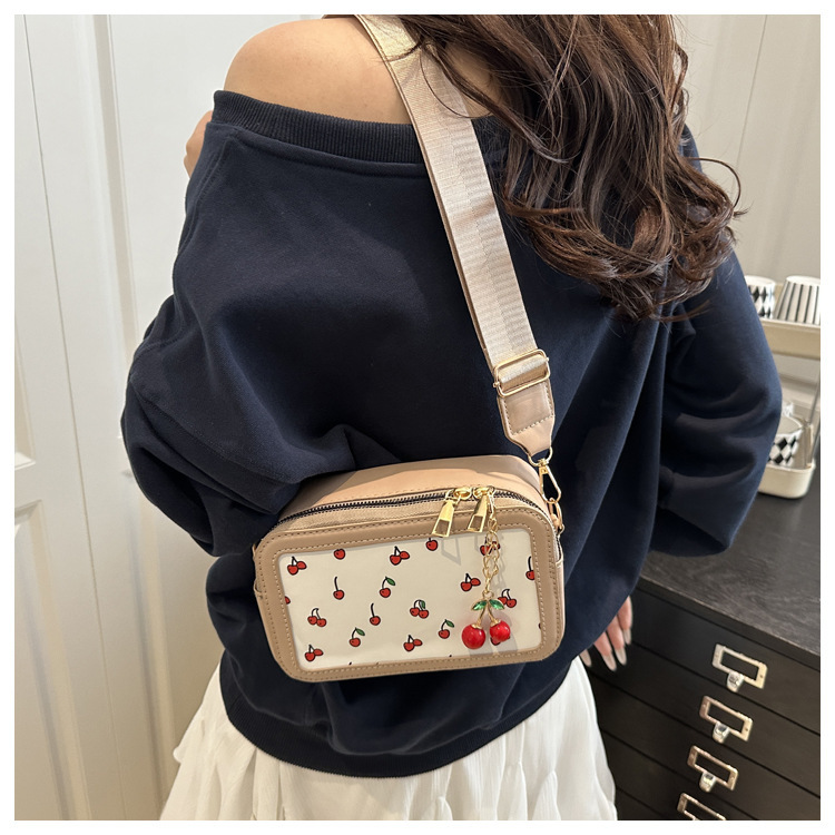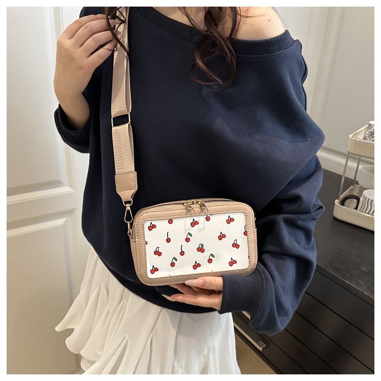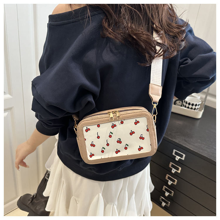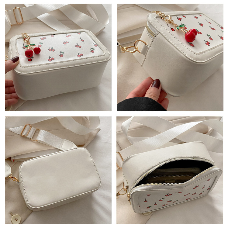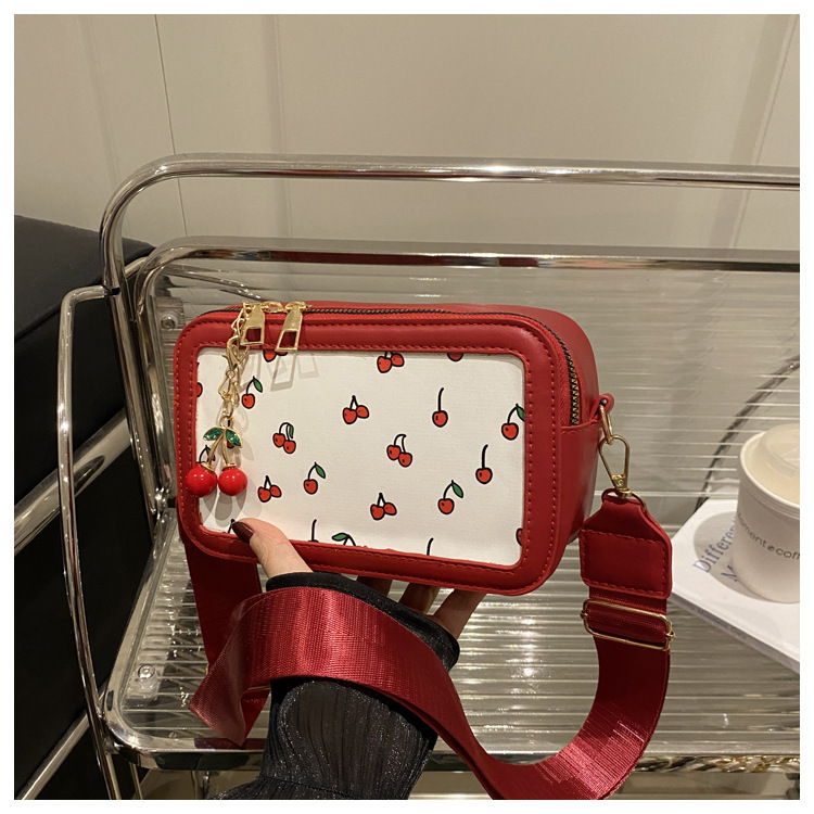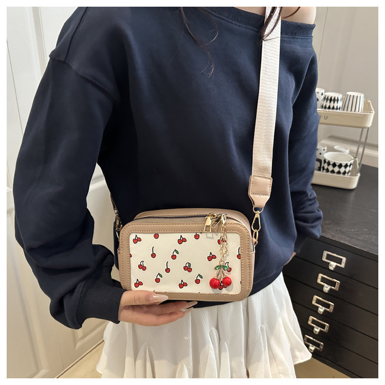 패션 통근 체리 사각형 가방 2025 새로운 유행 소녀 핸드백 간단한 인쇄 어깨 카메라 가방