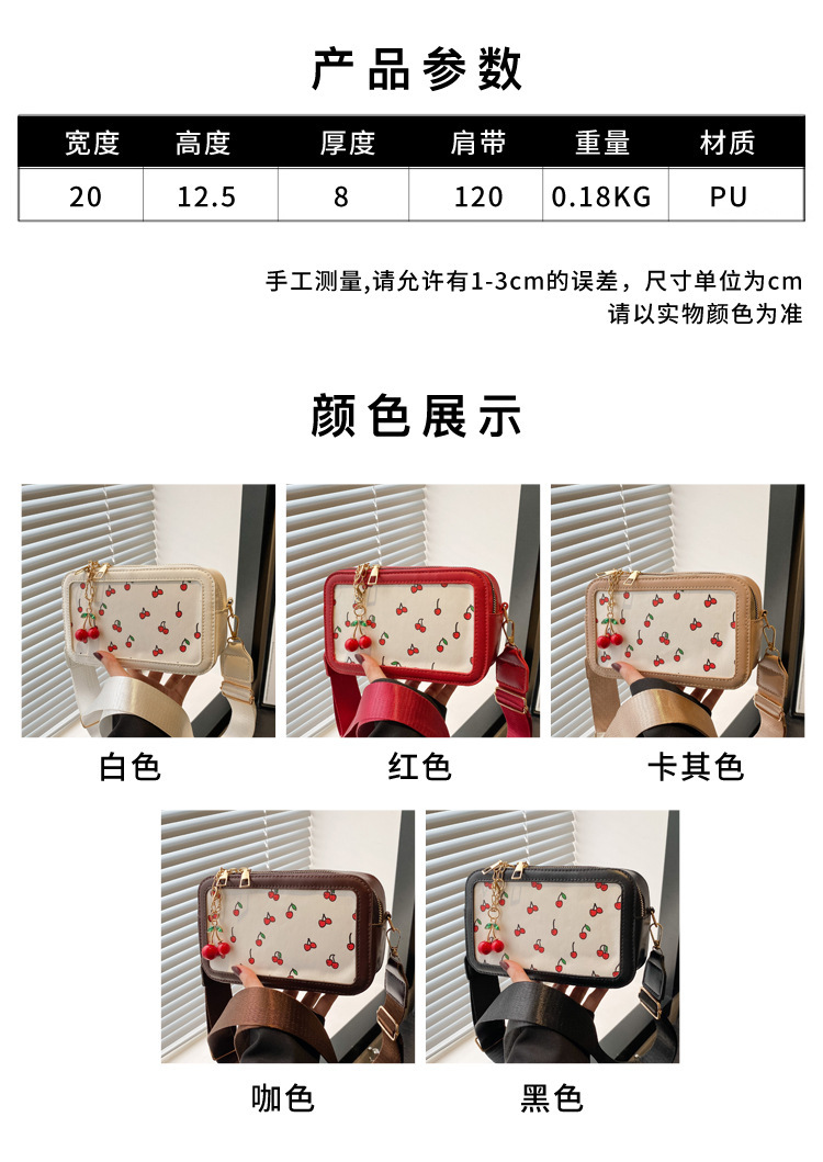 패션 통근 체리 사각형 가방 2025 새로운 유행 소녀 핸드백 간단한 인쇄 어깨 카메라 가방스토어 가기