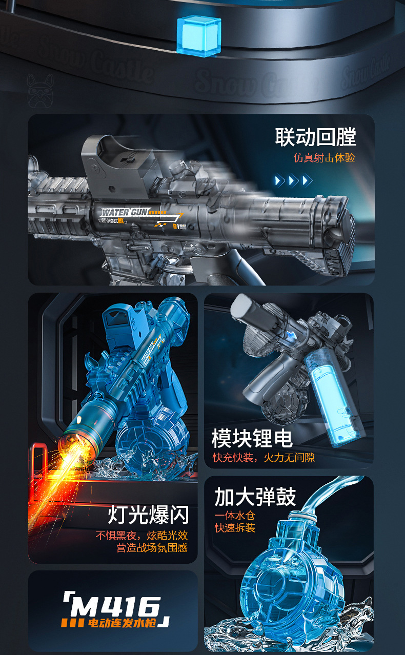 인기 있는 M416 전기 물총 연결 조명 고압 강력 스프레이 완전 자동 연속 물총 어린이 물총스토어 가기