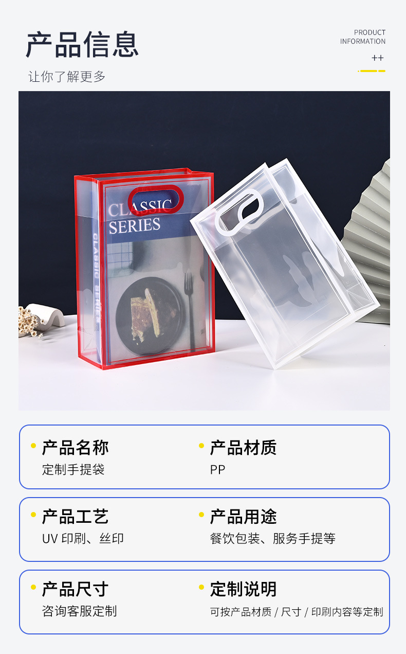 투명한 핸드백 맞춤형 PP 플라스틱 선물 가방 고급 대형 크리스마스 결혼 기념품 가방 도매스토어 가기