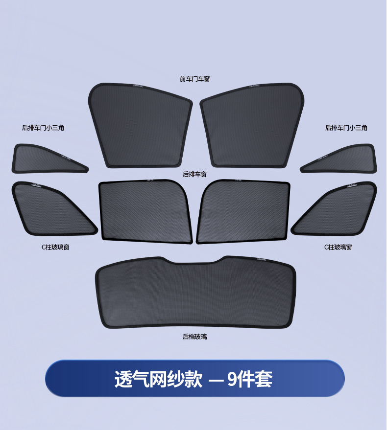 • 24-25 모델 EC6 [프론트 기어 + 풀 윈도우 선쉐이드 + 선루프 선쉐이드] 9피스 메쉬 세트