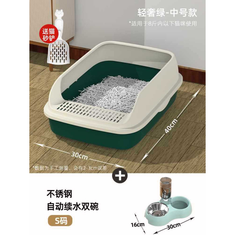 • [라이트 럭셔리 그린] - 중형 + 고양이 밥그릇 (기간 한정 고양이 배변 국자)