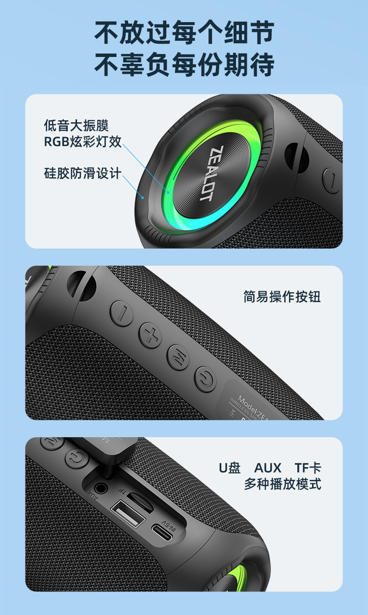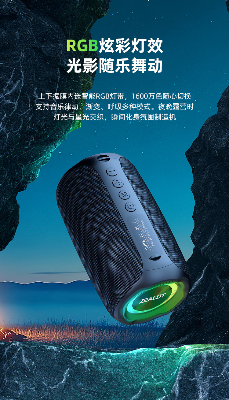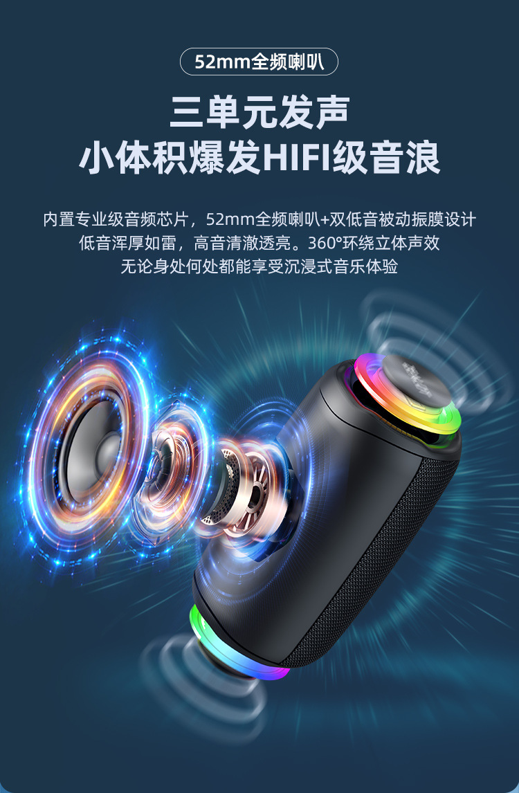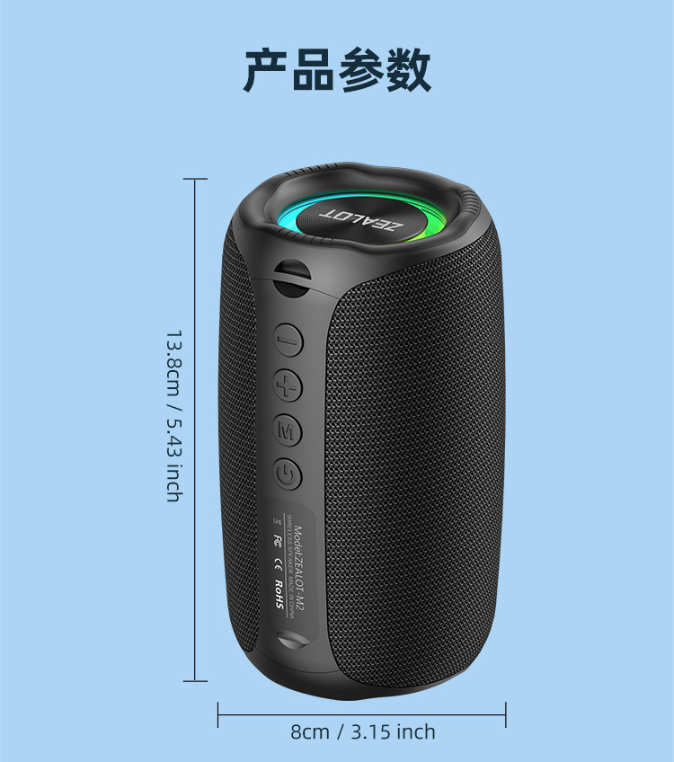 Fanatic M2 미니 휴대용 무선 블루투스 소형 스피커 카드 다채로운 조명 패브릭 스피커 서브 우퍼