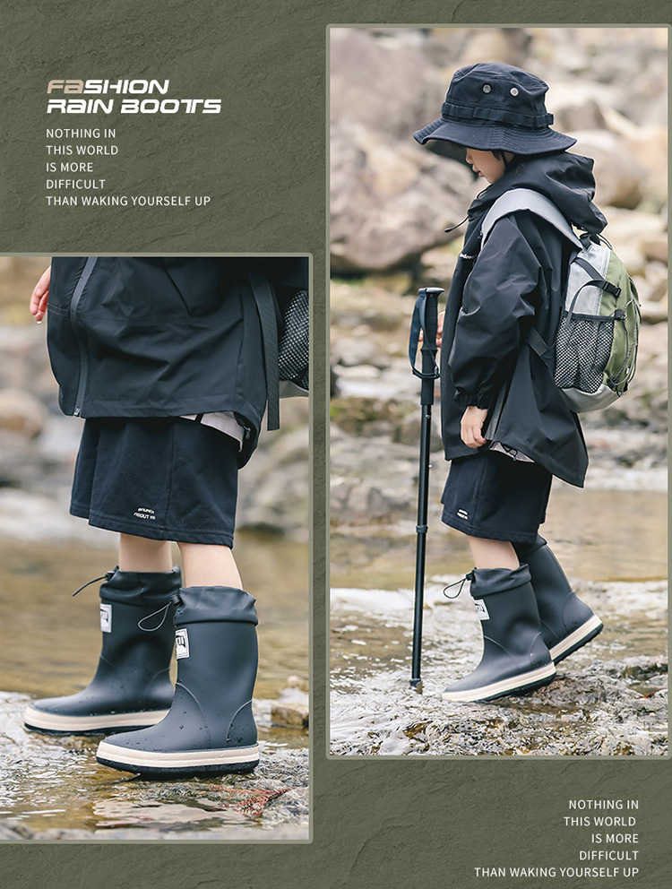 남녀공용 신형 일본 및 한국 아동 장화, 미끄럼 방지, 내마모성, 패셔너블한 아동용 고무신, 중형 아동용 장화, 대형 아동용 벨벳 워터슈즈
