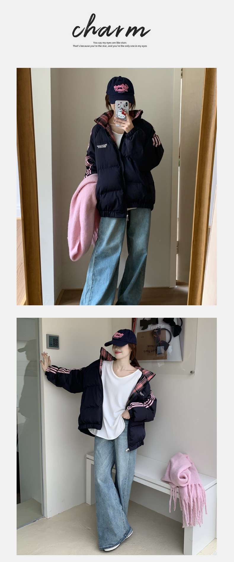 대외 무역 2024 겨울 여성용 짧은 면 패딩 재킷, 스탠드 칼라, 한국식 베스티 의상, 두꺼운 면 패딩 재킷, 패딩 재킷, 재킷스토어 가기