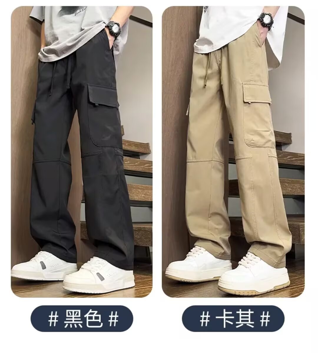 봄 여름 얇은 남성 트렌디 아웃도어 하이킹 팬츠 멀티 포켓 오버올 스트레이트 캐주얼 팬츠 와이드 레그 오버올스토어 가기