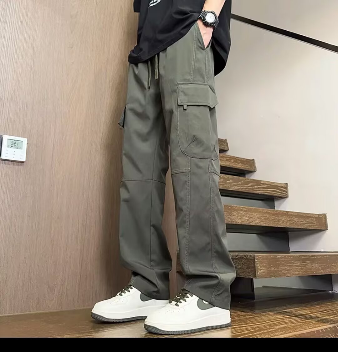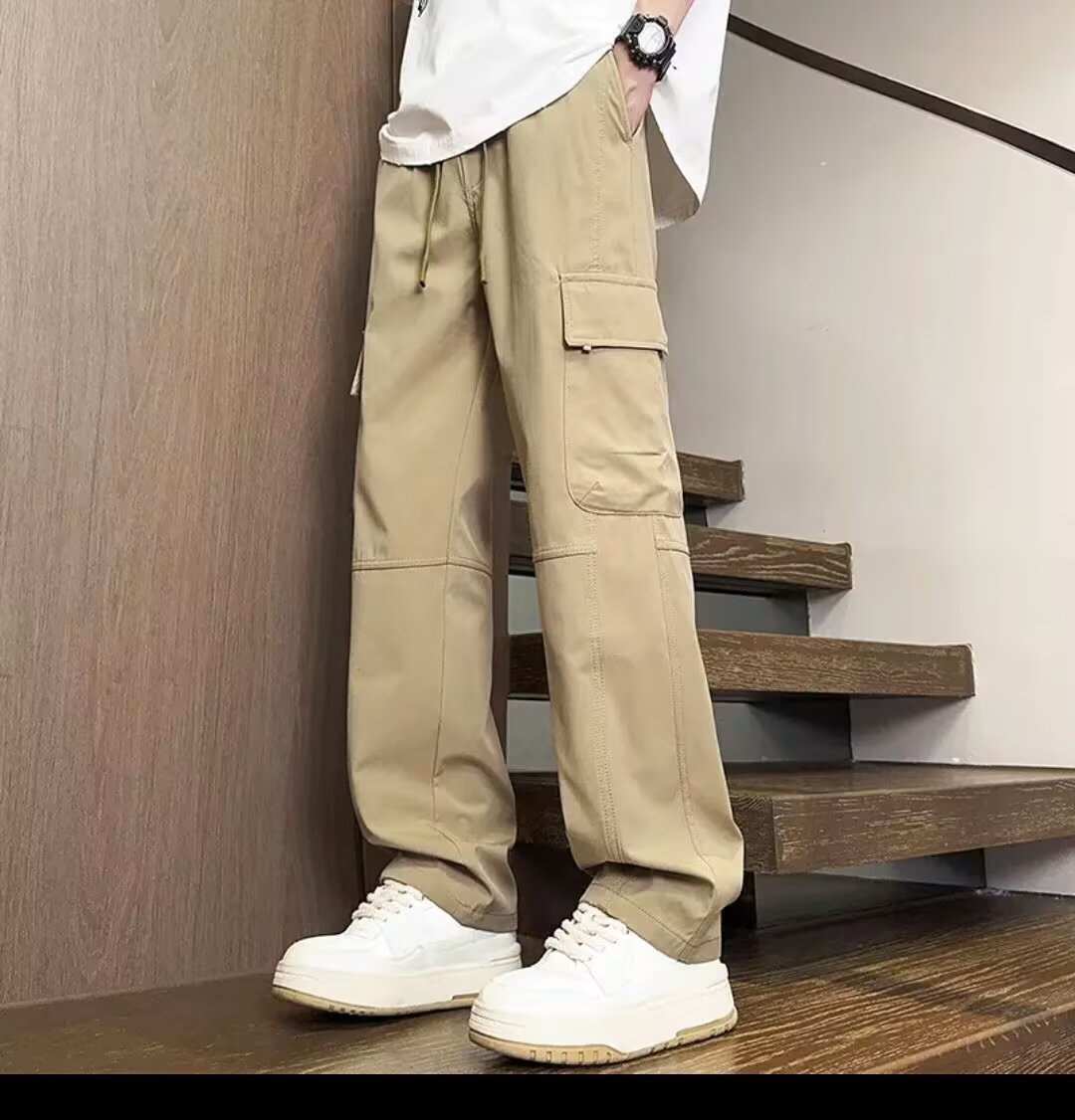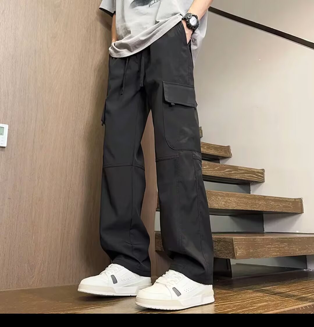 봄 여름 얇은 남성 트렌디 아웃도어 하이킹 팬츠 멀티 포켓 오버올 스트레이트 캐주얼 팬츠 와이드 레그 오버올