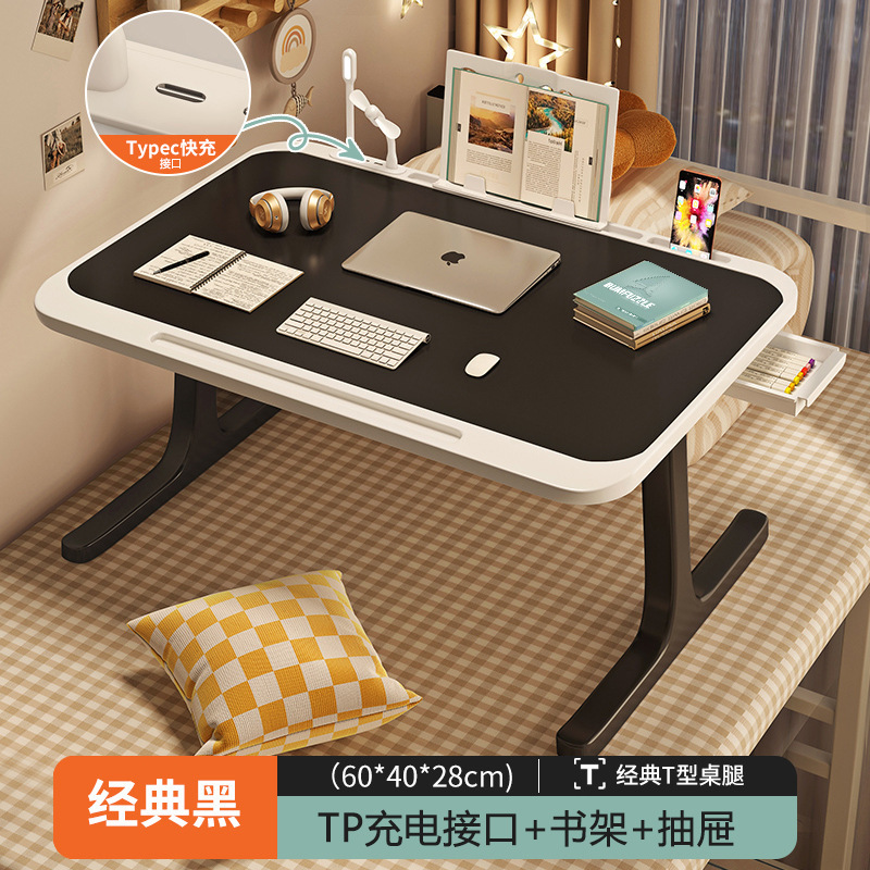Jinlianda 침대 접이식 작은 테이블 노트북 테이블 학생 기숙사 테이블 쓰기 테이블 가정용 게으른 식탁스토어 가기