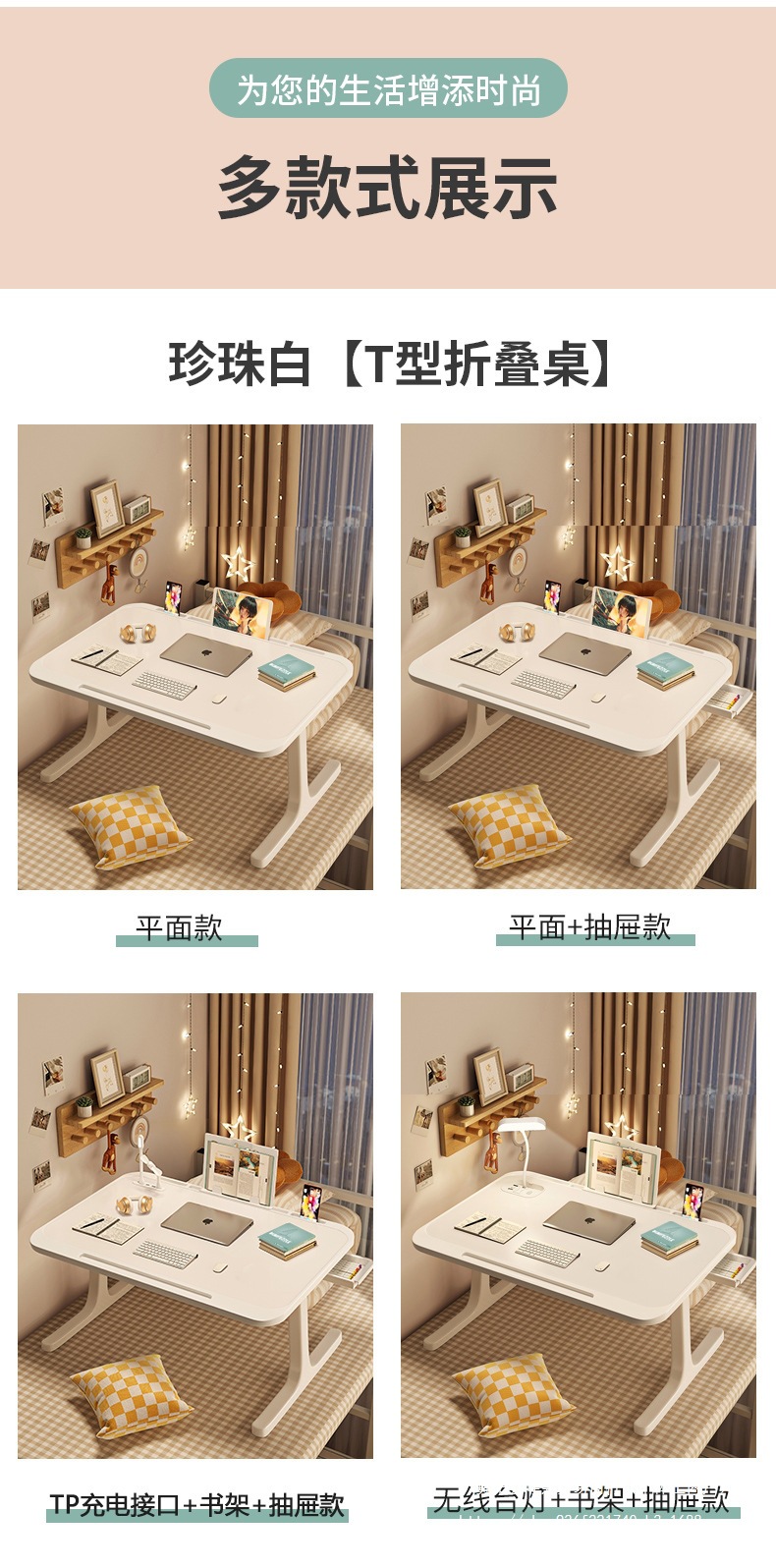 Jinlianda 침대 접이식 작은 테이블 노트북 테이블 학생 기숙사 테이블 쓰기 테이블 가정용 게으른 식탁