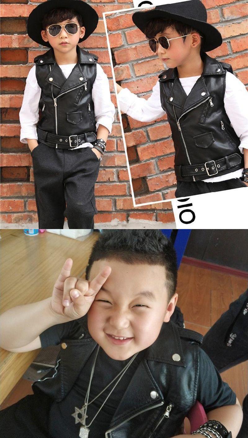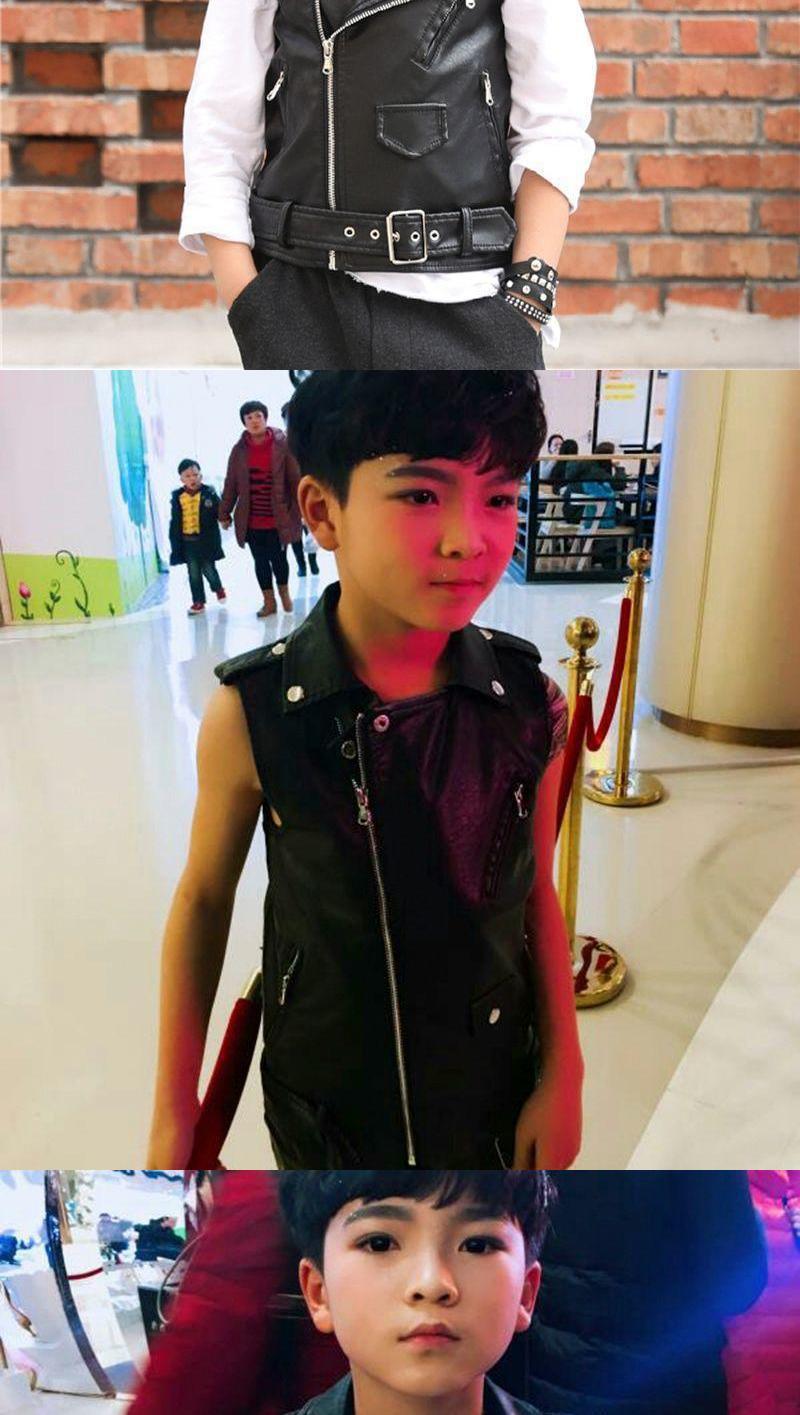 한국 아동복 소년 PU 가죽 조끼 봄, 가을 한국 스타일 다목적 스탠드 칼라 오토바이 가죽 조끼 유행스토어 가기