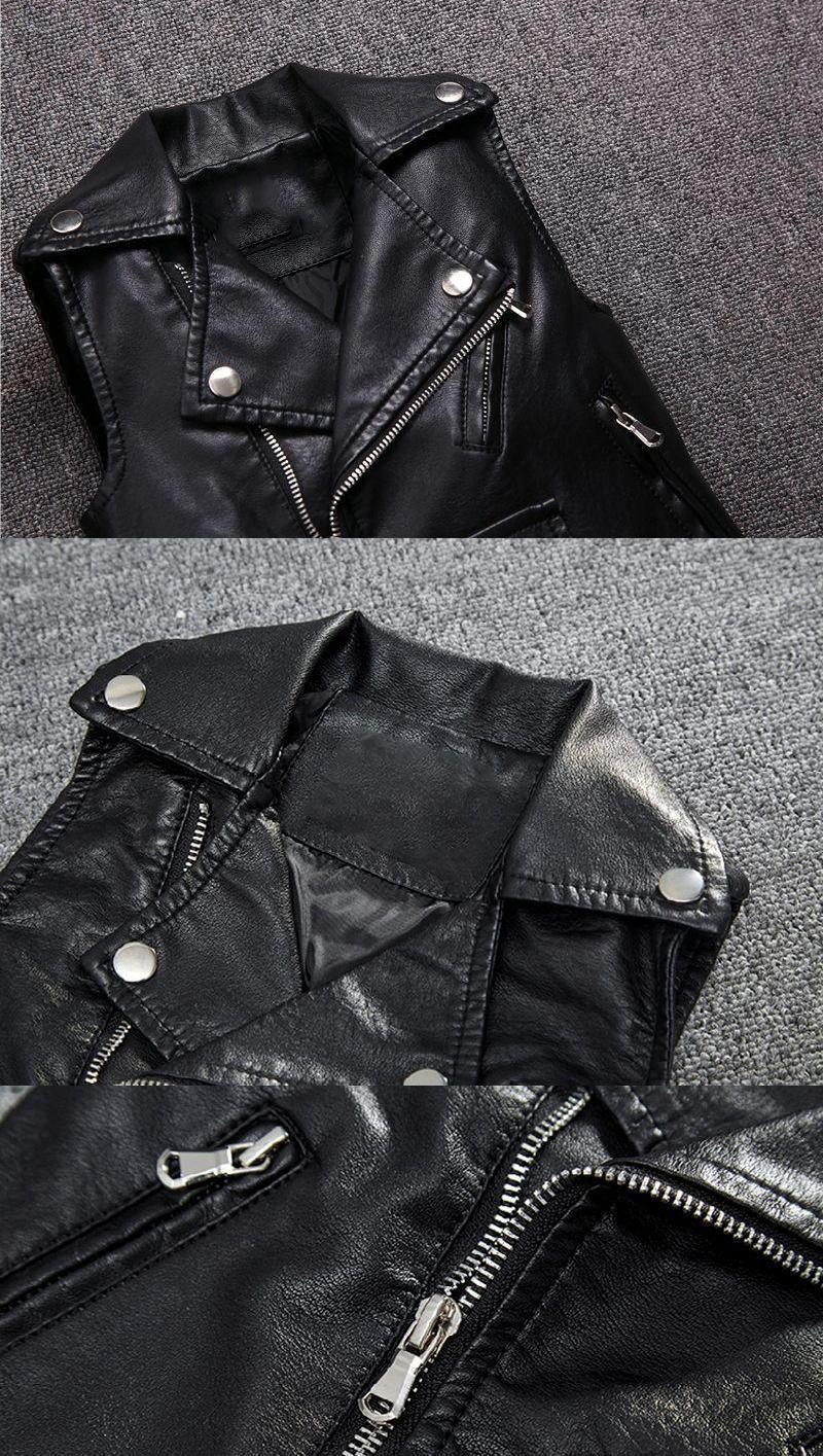 한국 아동복 소년 PU 가죽 조끼 봄, 가을 한국 스타일 다목적 스탠드 칼라 오토바이 가죽 조끼 유행