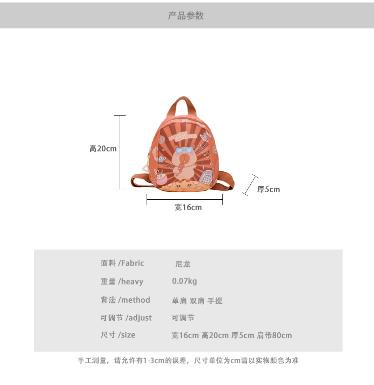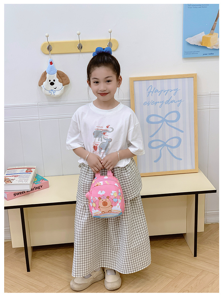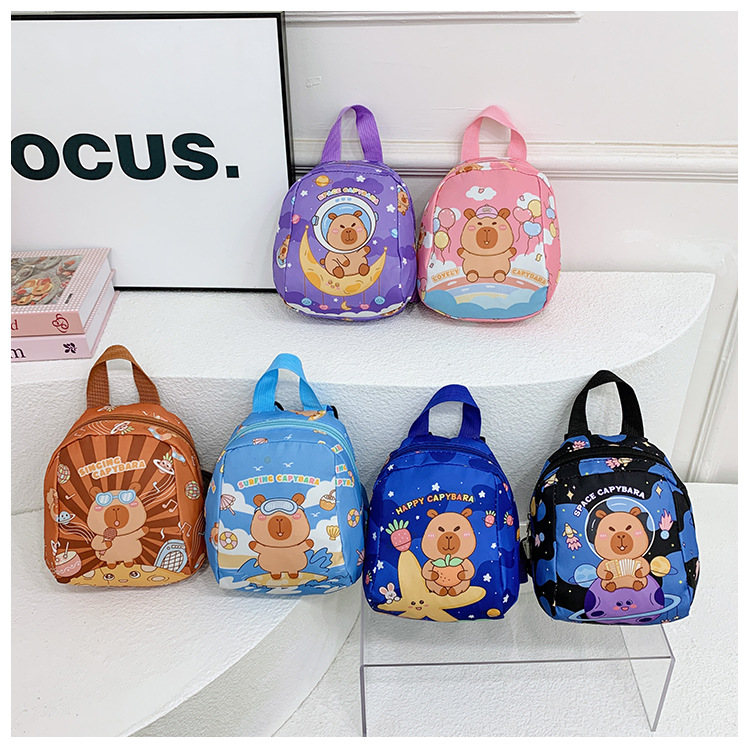2024 새로운 어린이 가방 유치원 초등학교 가방 귀여운 만화 귀여운 Kapibara 어린이 배낭