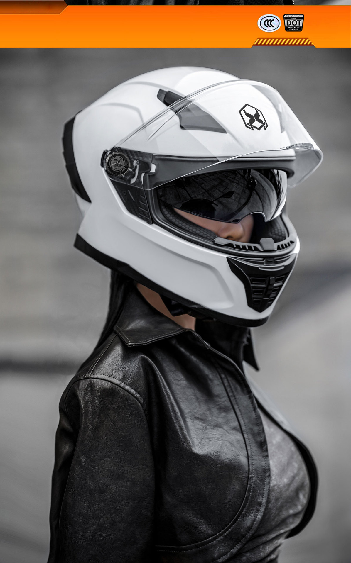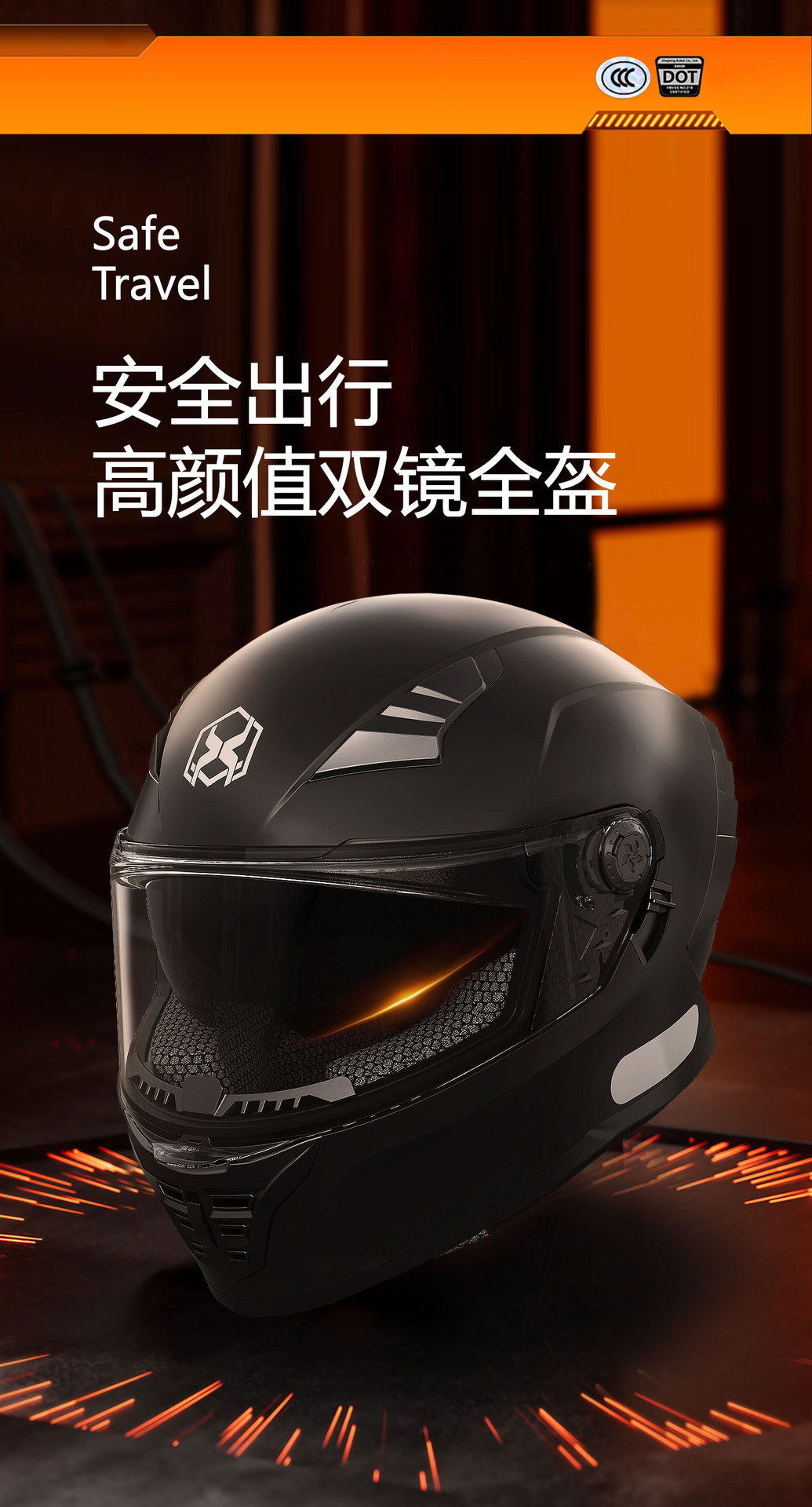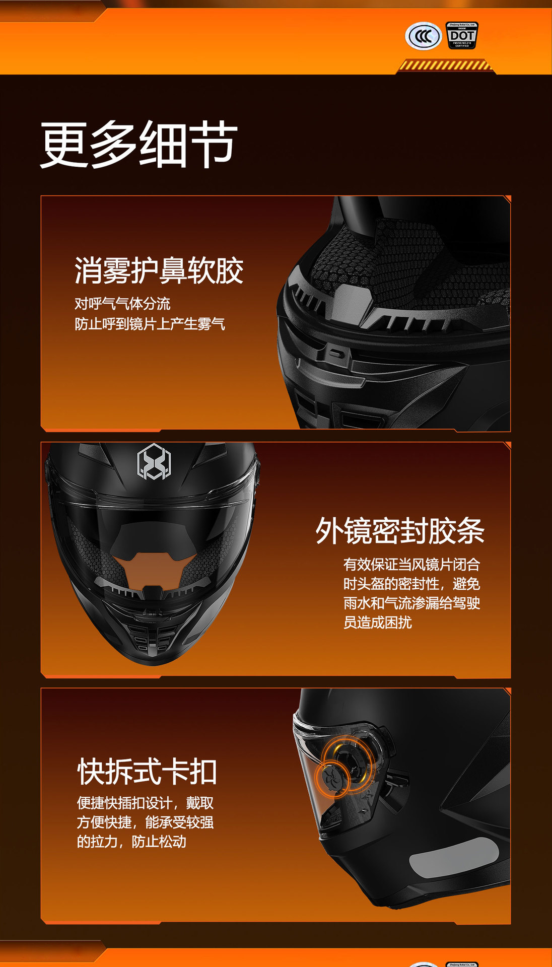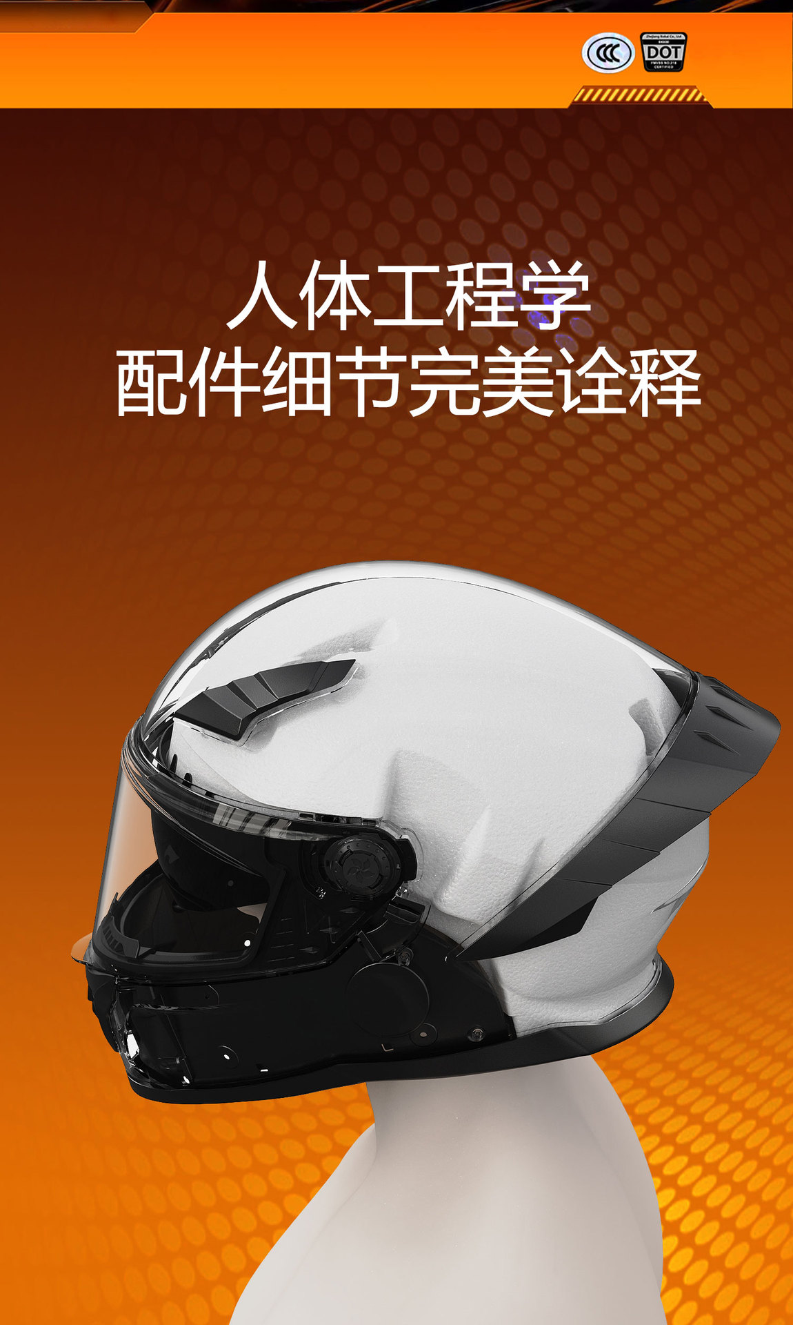 3.镜片:PC双镜片,外镜透明,内镜防晒。