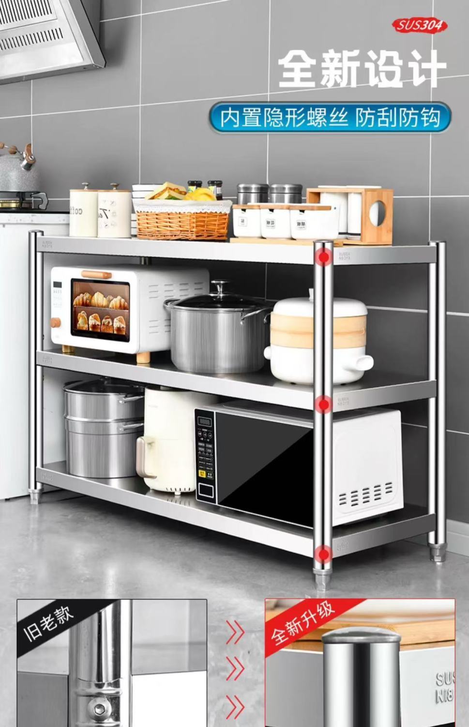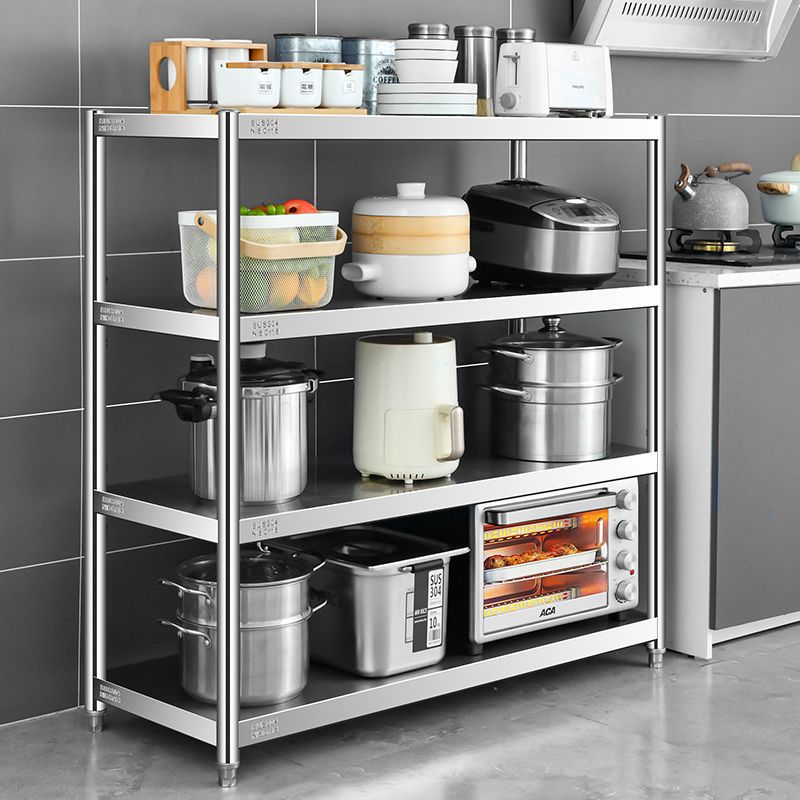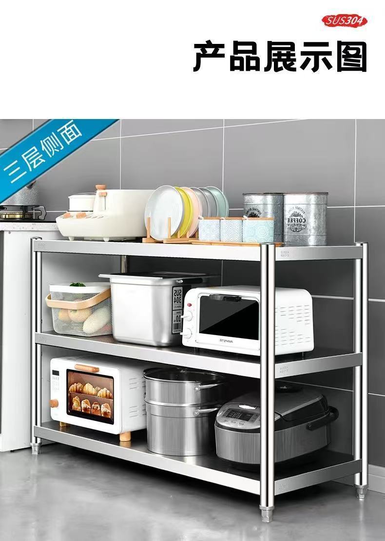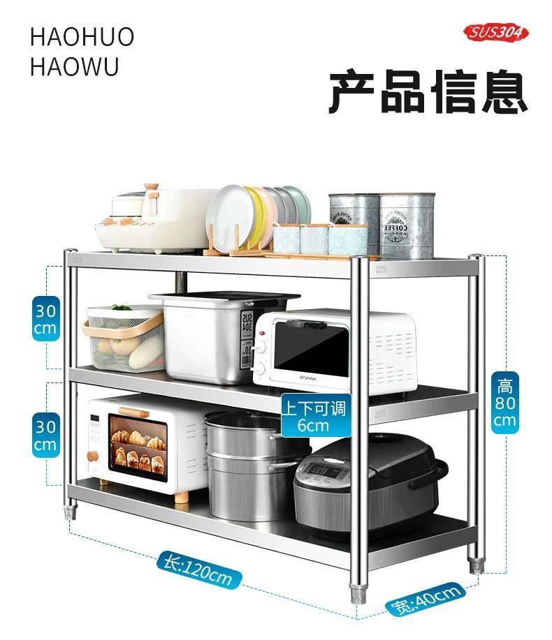 304 주방 랙 가정용 스테인레스 스틸 바닥에서 천장까지 다층 선반 저장 전자 레인지 선반 저장 랙 사용자 정의스토어 가기
