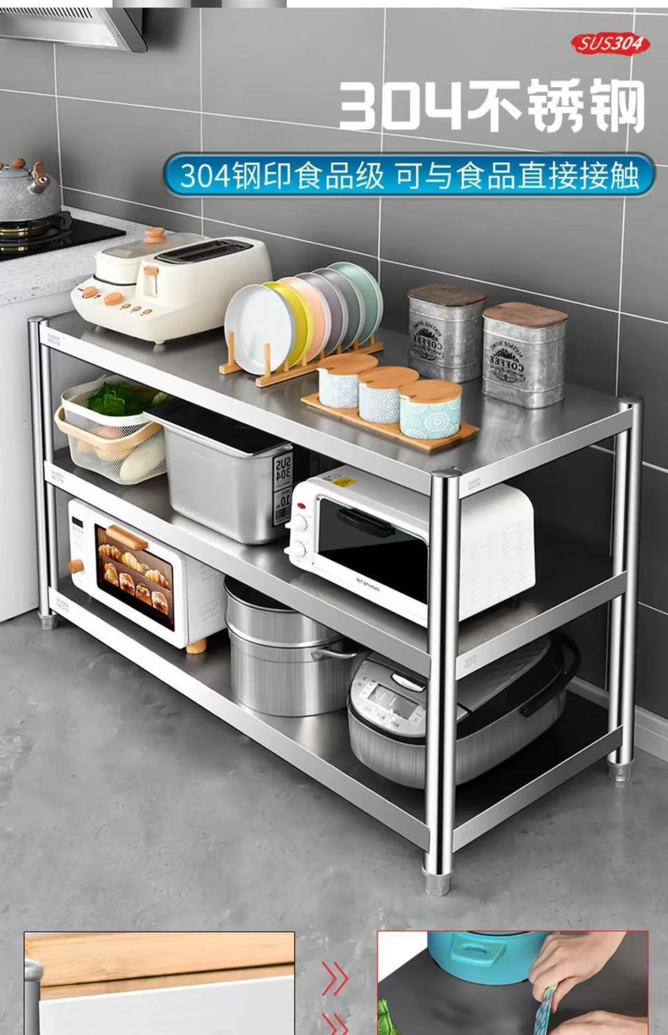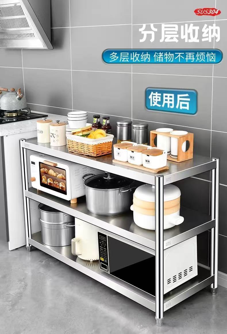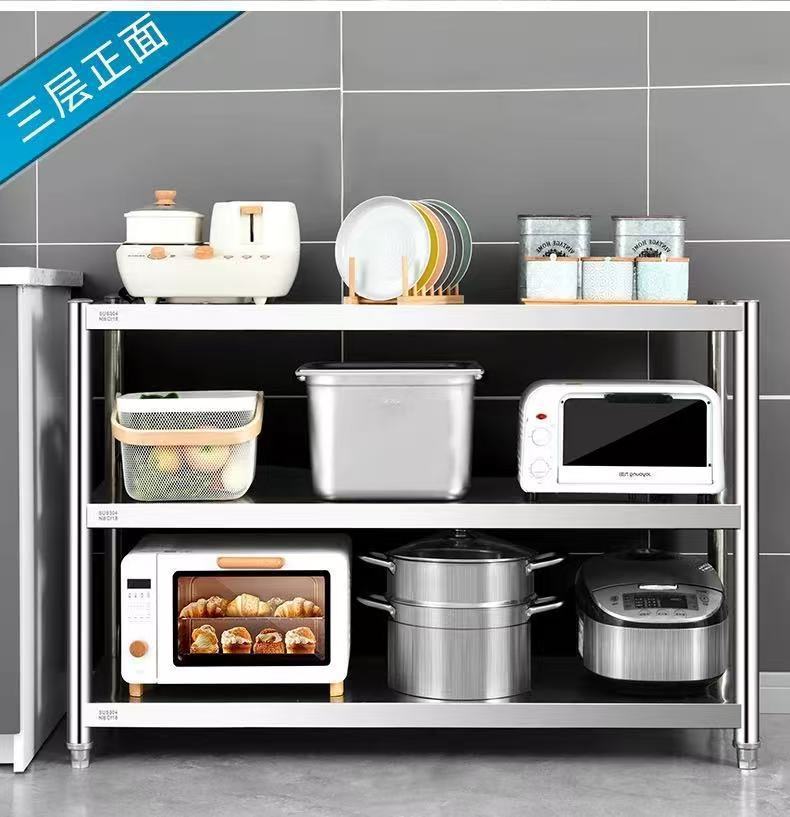 304 주방 랙 가정용 스테인레스 스틸 바닥에서 천장까지 다층 선반 저장 전자 레인지 선반 저장 랙 사용자 정의스토어 가기